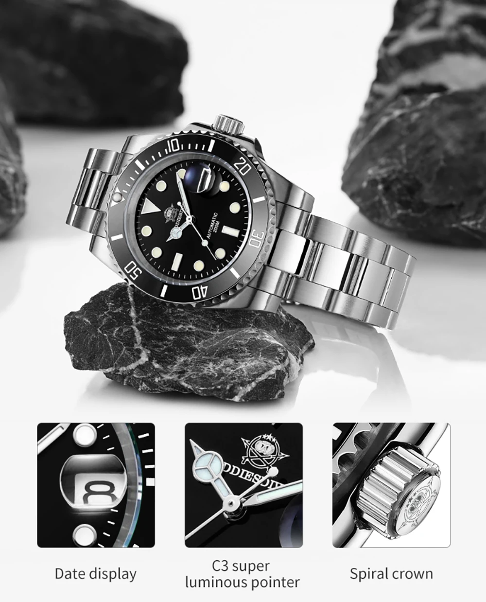 ADDIESDIVE NH35A Movement Automatic Watch Luminous 200m Diver Ceramic Bezel Sapphire Crystal 316L Steel Watch For Man Gift Clock