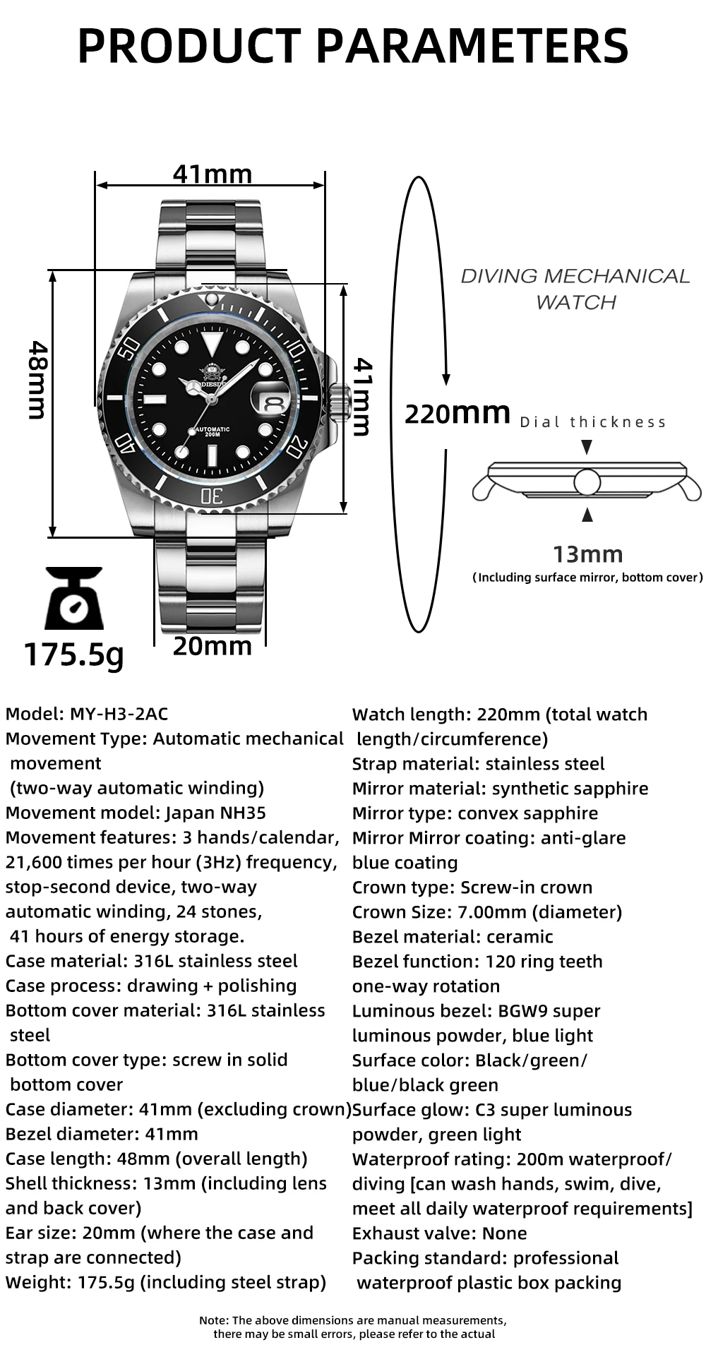 Waterproof rating: 200 meters waterproof/diving [can wash hands, swim, dive, meet all daily waterproof requirements]
