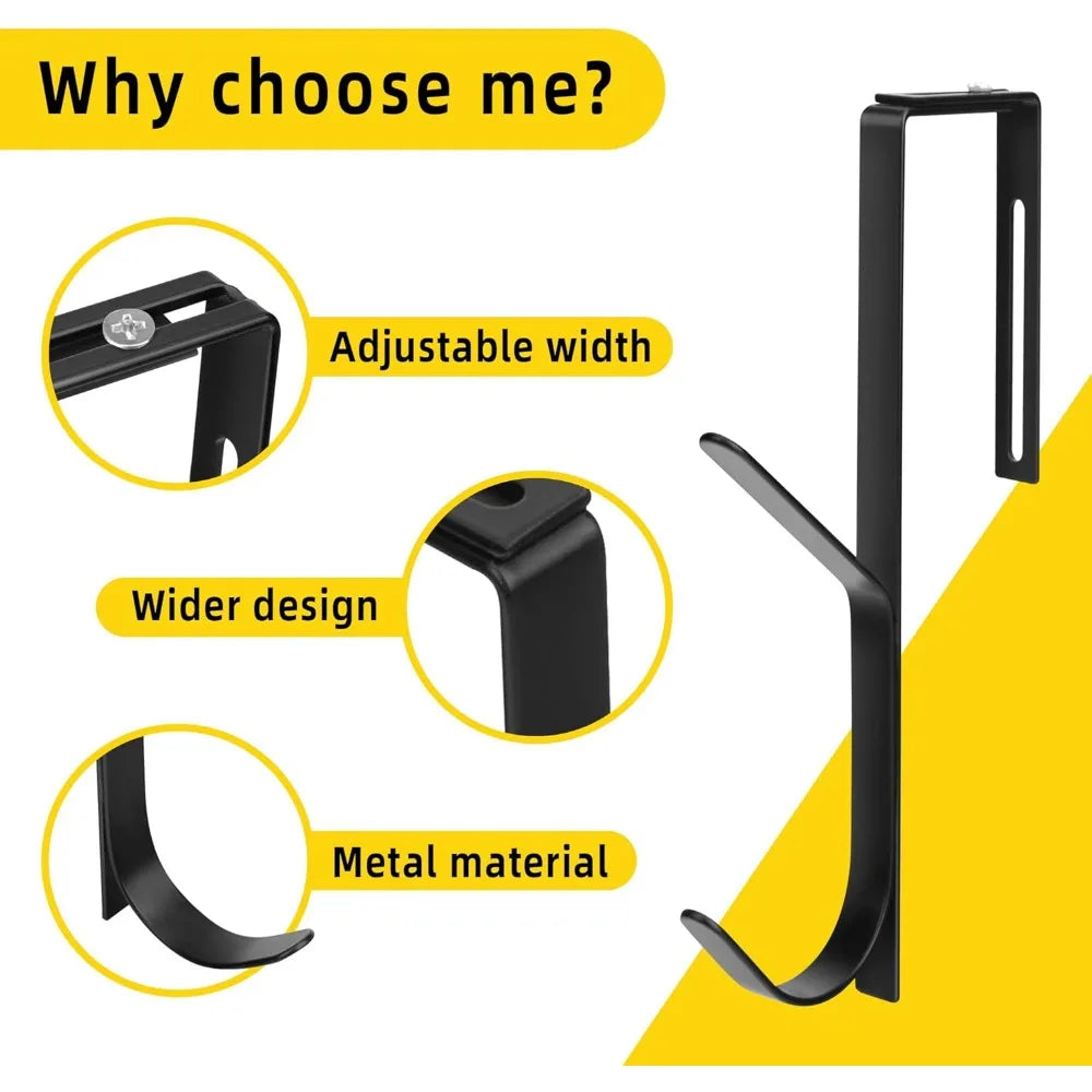 adjustable double coat hooks, thick cubicle wall coat hooks, metal over the panel double hooks adjusted to fit 1.35 to 3.5 inch