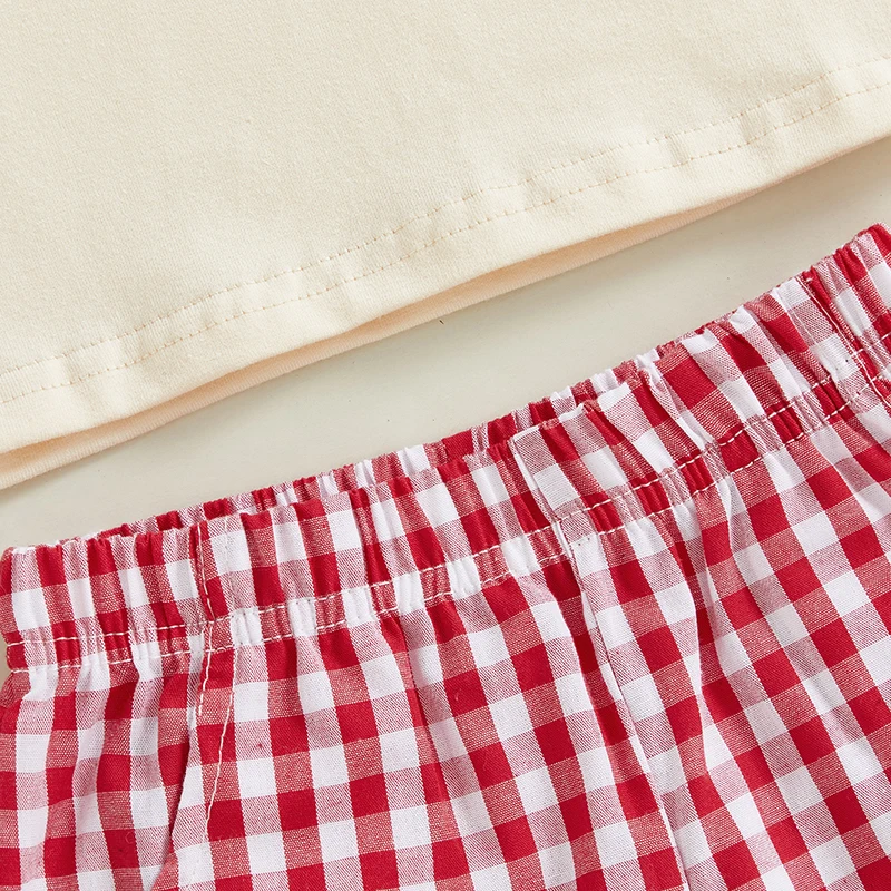 Toddler Girls Summer Outfit Lobster Embroidery Short Sleeves T-Shirt and Elastic Plaid Shorts Set Cute 2 Piece Clothes