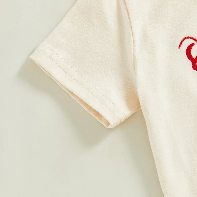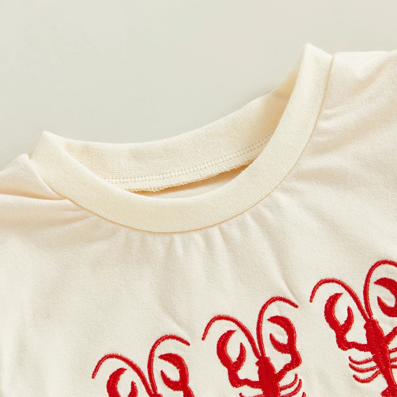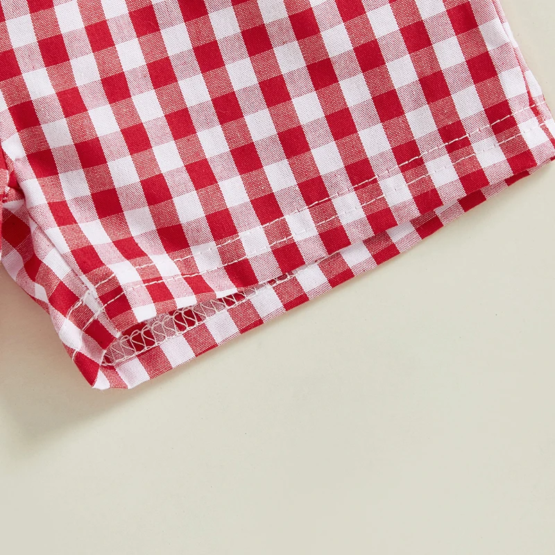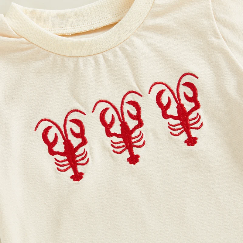 Girls fashion outfit; Baby girl summer t-shirt with lobster embroidery, short sleeves, round neck; Baby girl shorts with plaid print, elastic waist, easy to fit, exquisite details make your little one cute and charming