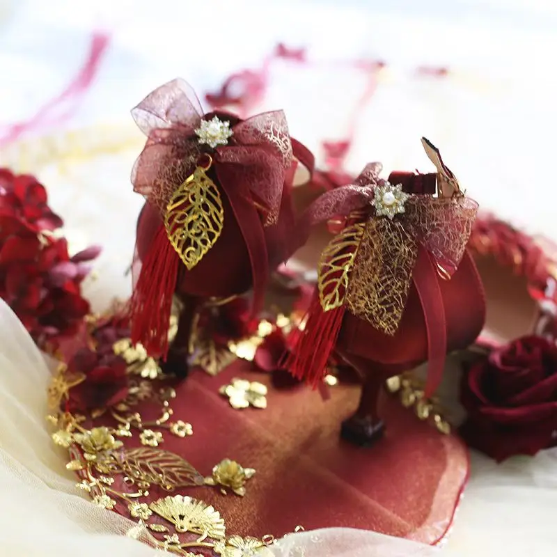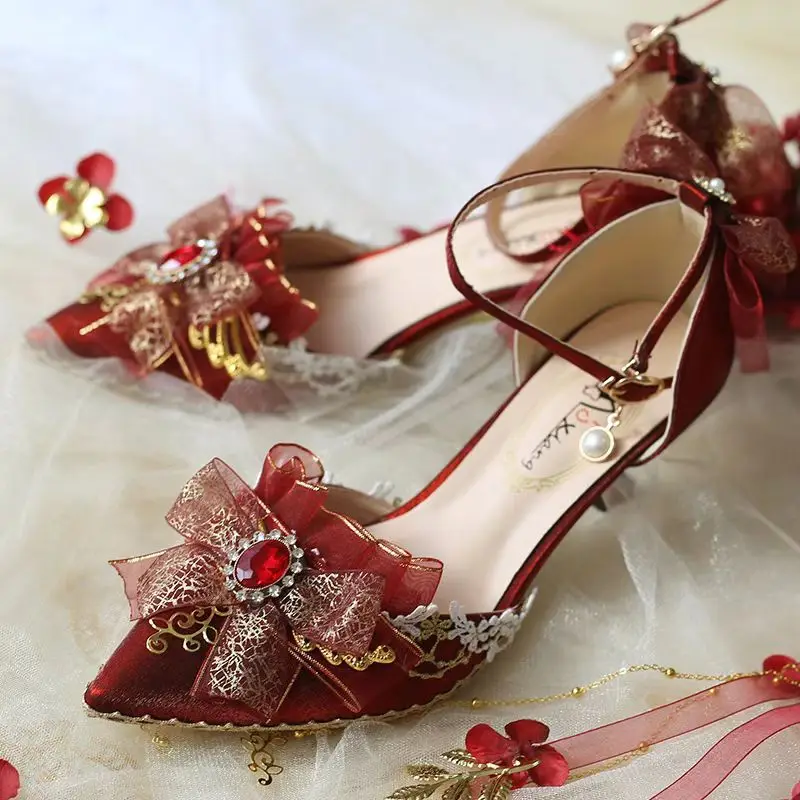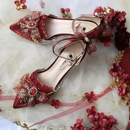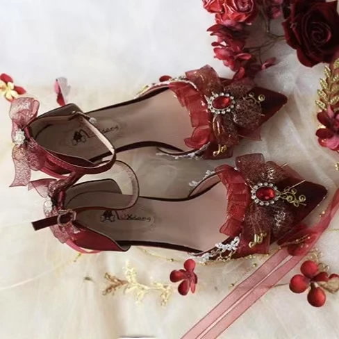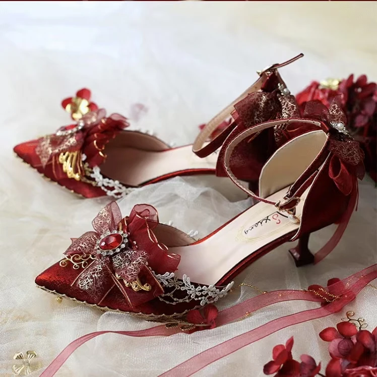 Advanced Red Handmade Romantic and Elegant French Red High Heels Princess Dress High Heels Women's Wedding Shoes