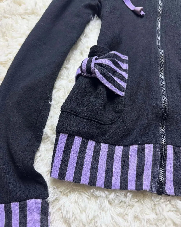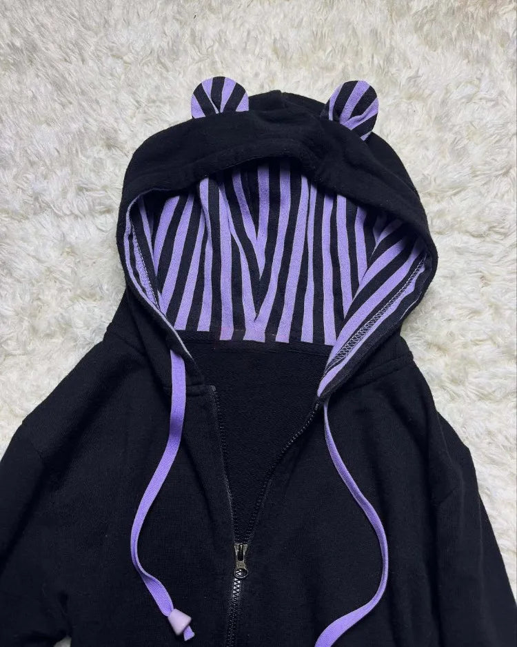 American Vintage Gothic Black Hooded Sweatshirt Autumn Winter Thin Coat Women Y2k Aesthetic Grunge Long Sleeve Jackets