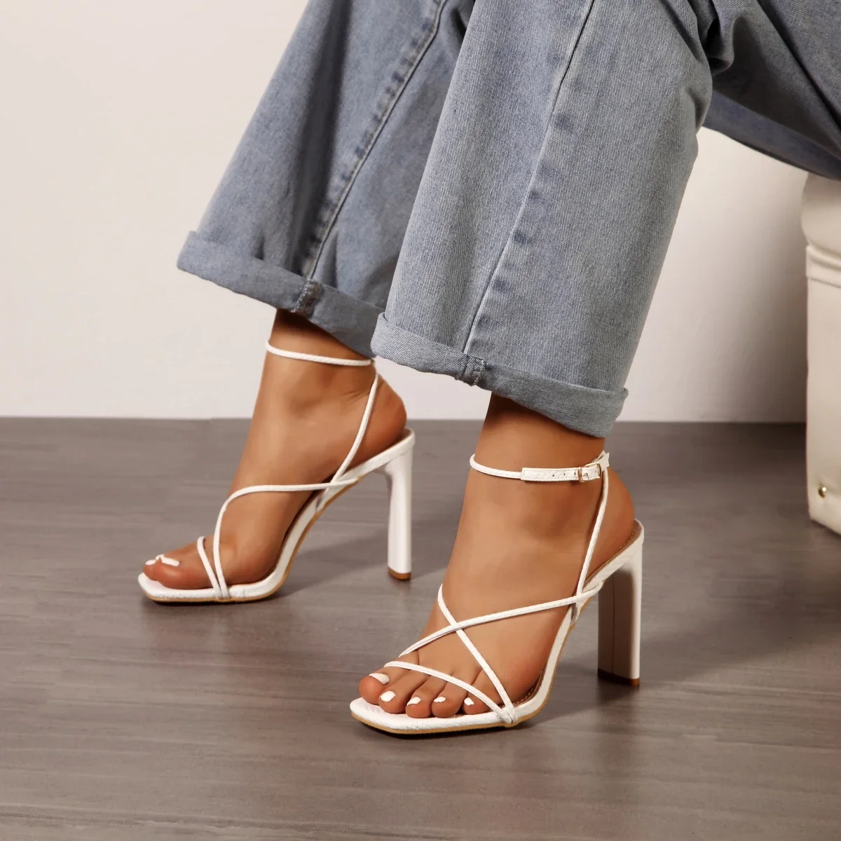 Aneikeh 2026 New Cross Strap Serpentine Strap Stiletto Women's Sandals 35-42 Large High Heel Ladies Shoes Sandalias De Mujer