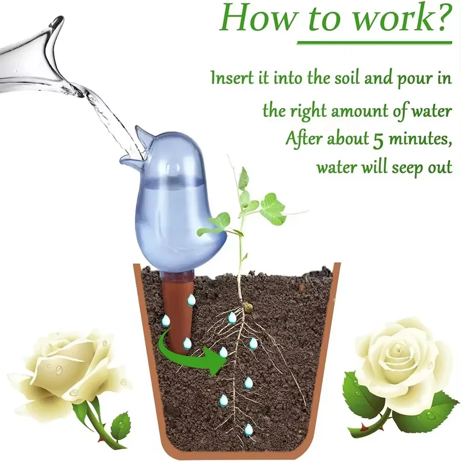 Automatic Flower Waterer, Self-Watering Water Balloon, Bird Shaped Hand Blown Plastic Plant Waterer for Home Garden