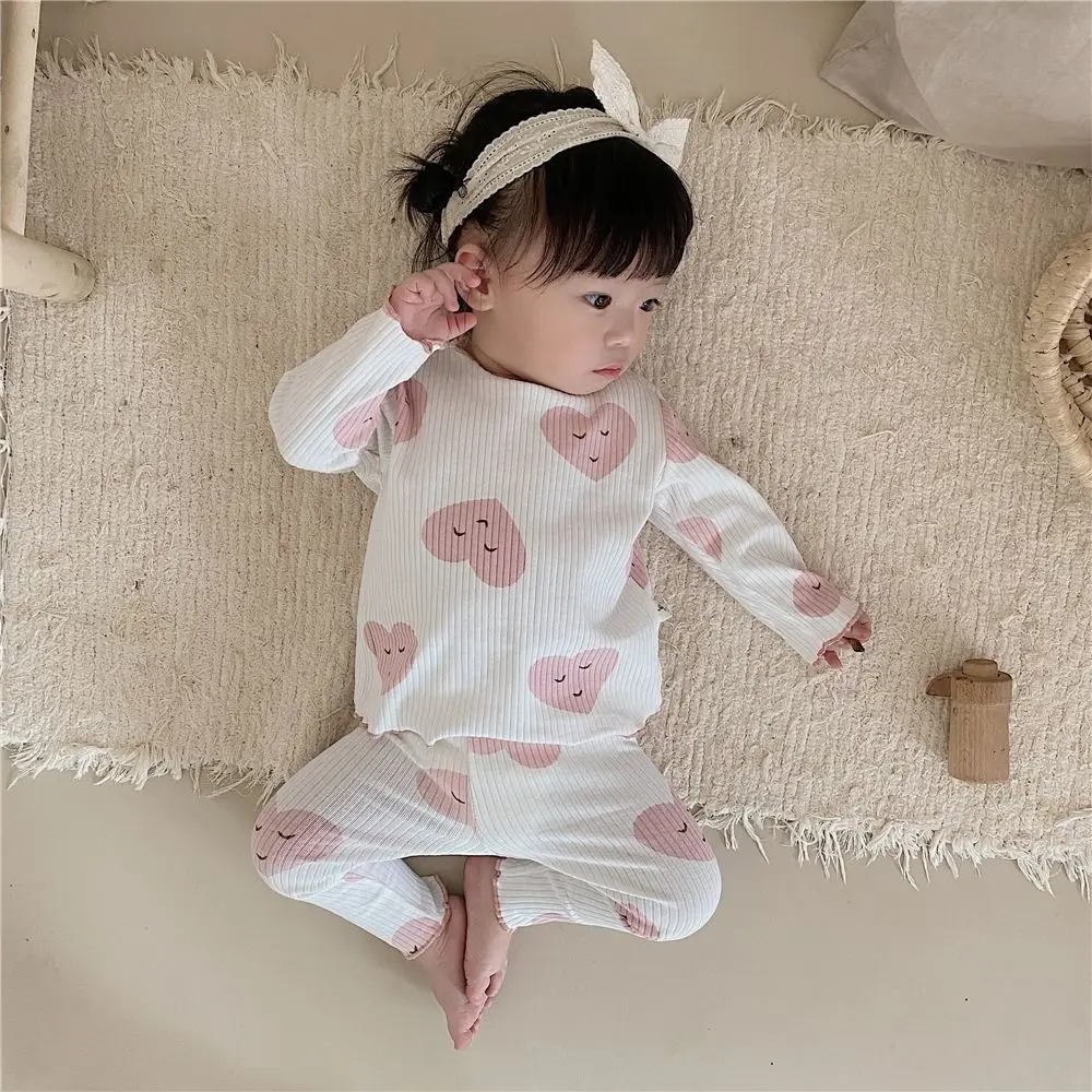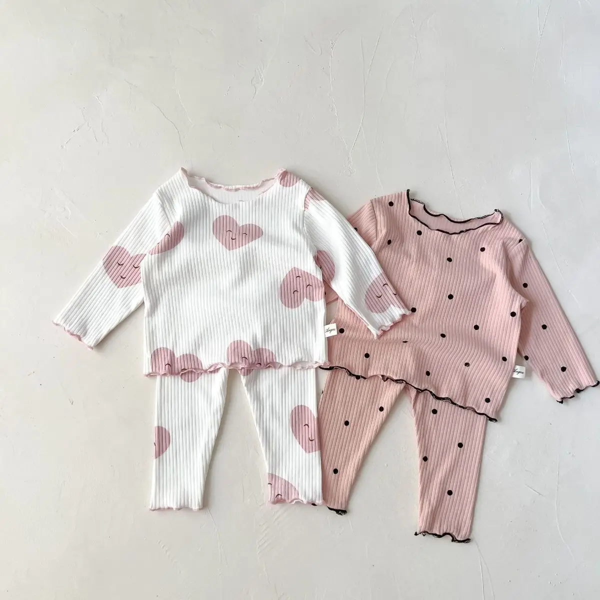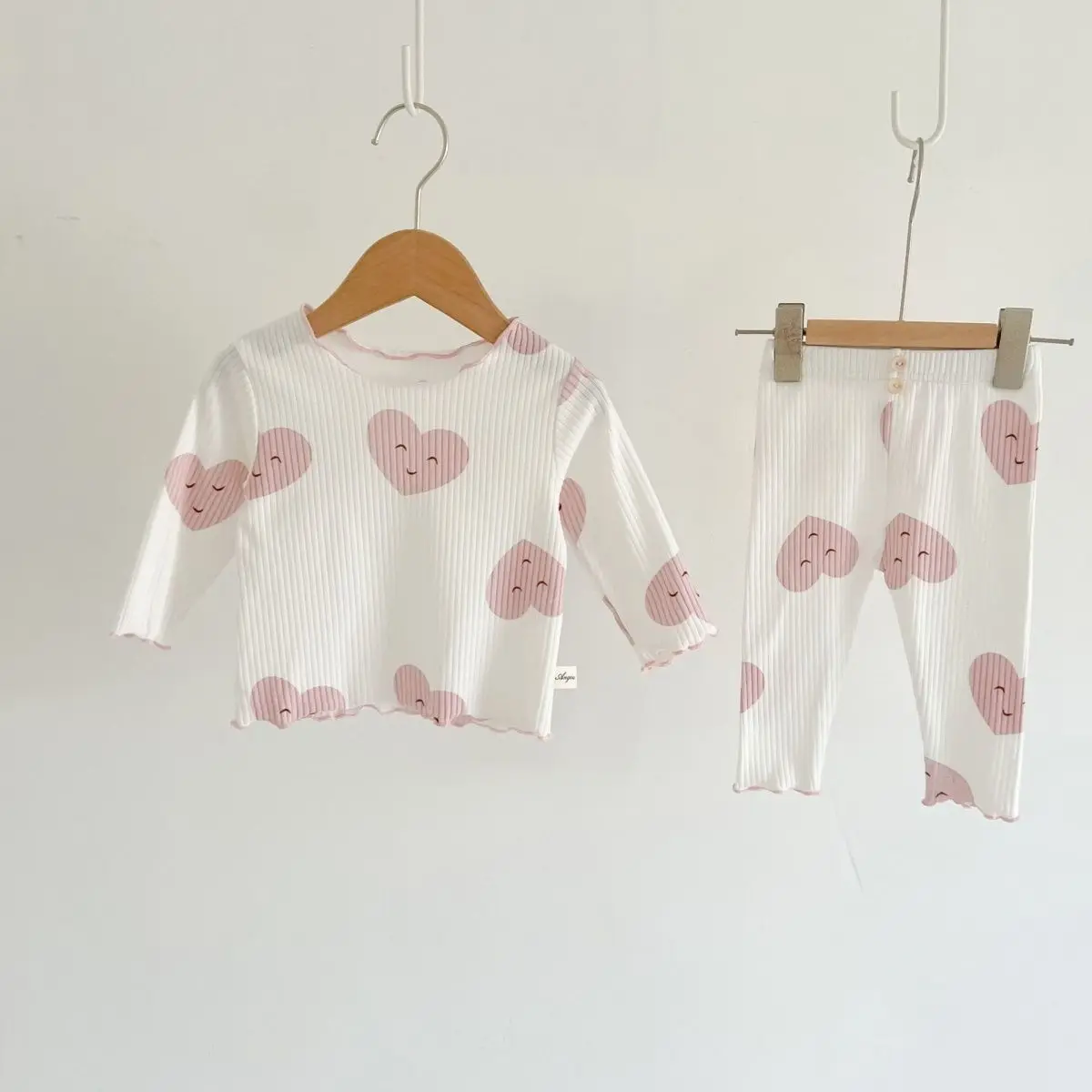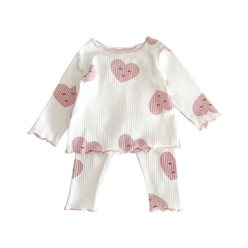 Autumn new ice silk children's home dress Pink Love suit Girls Pajamas Sets Children's Pijamas Breathable Baby Clothes