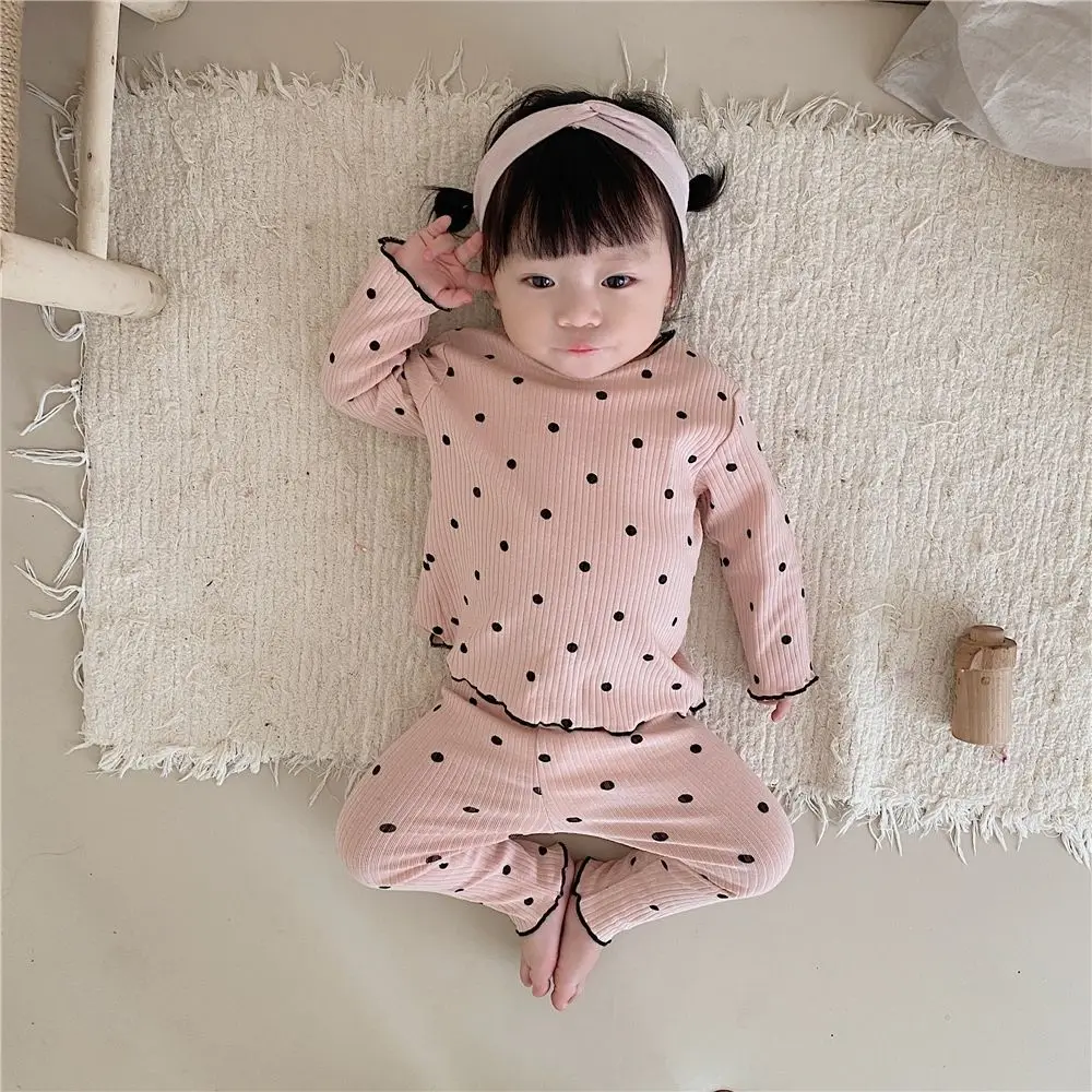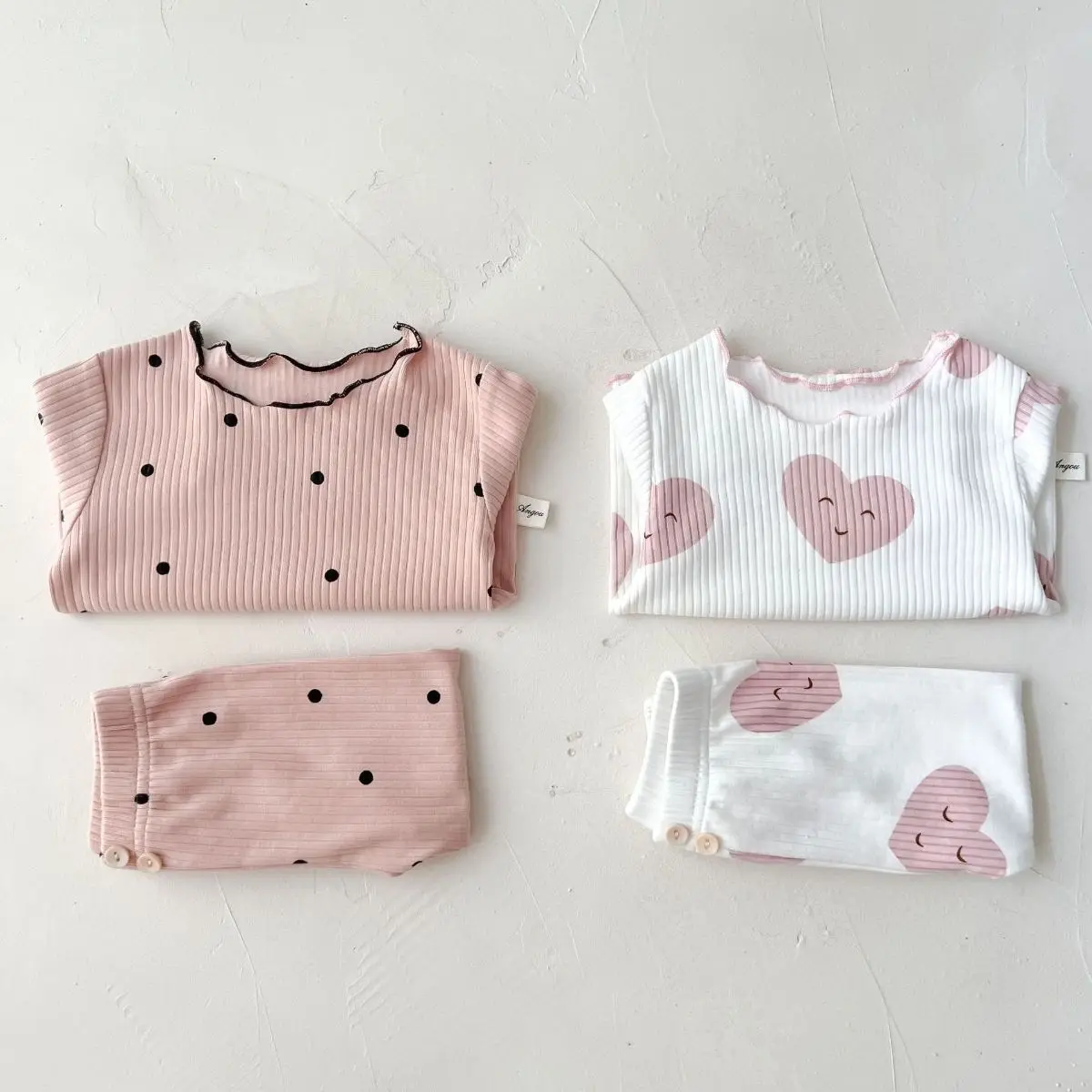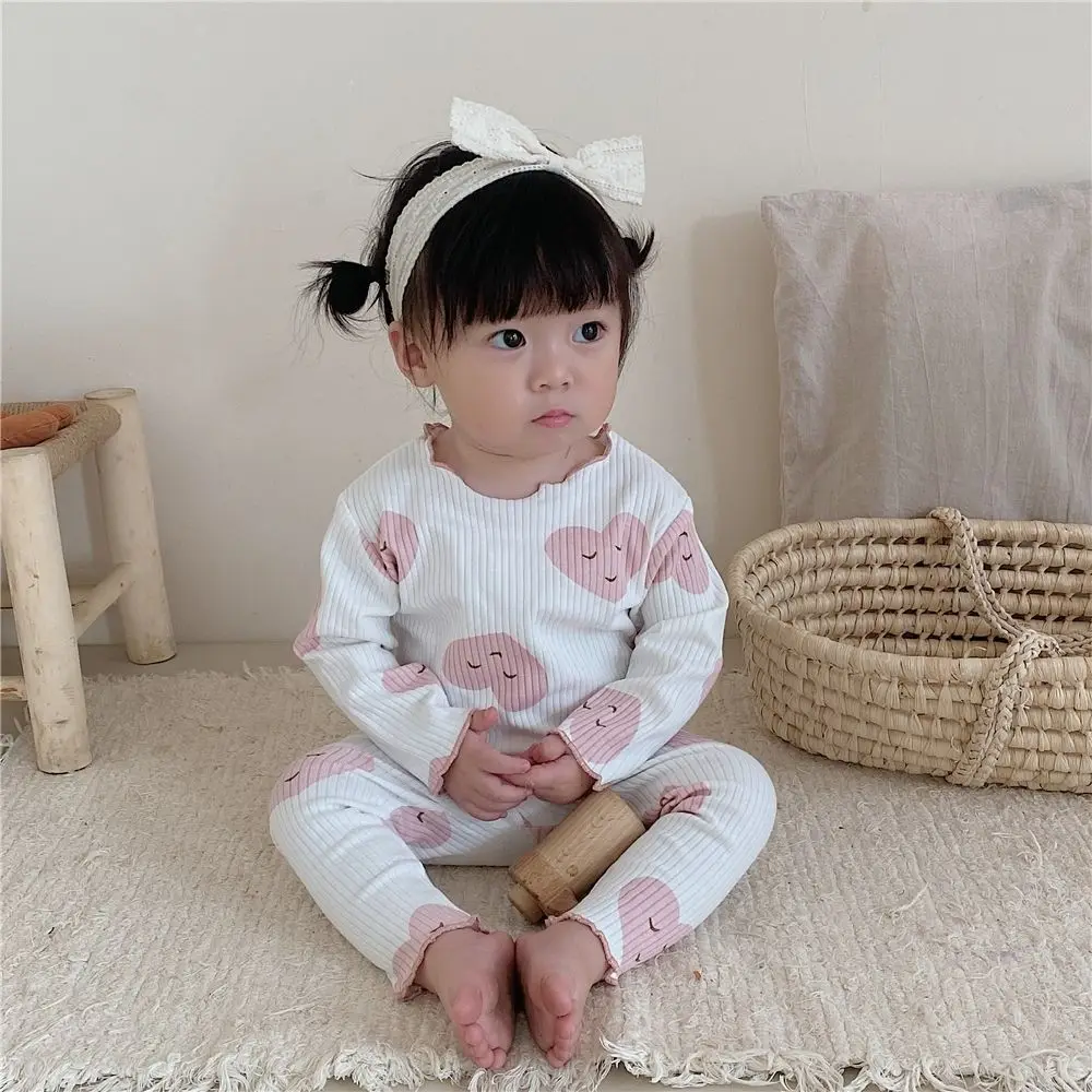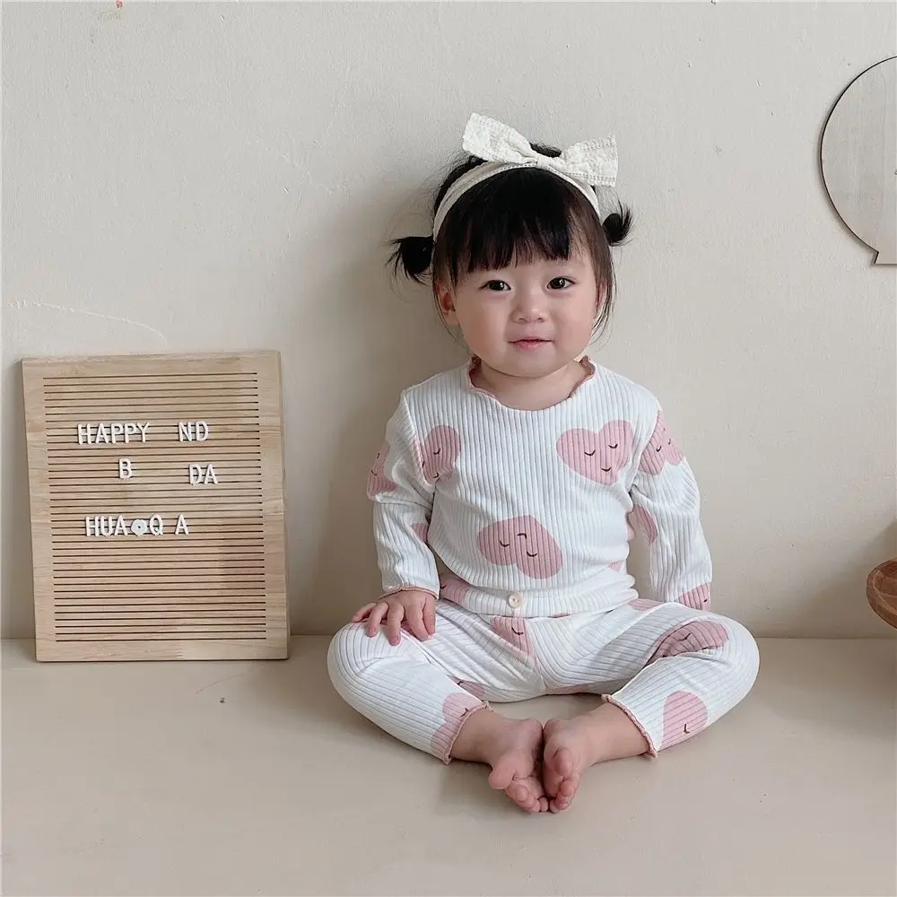 Autumn new ice silk children's home dress Pink Love suit Girls Pajamas Sets Children's Pijamas Breathable Baby Clothes