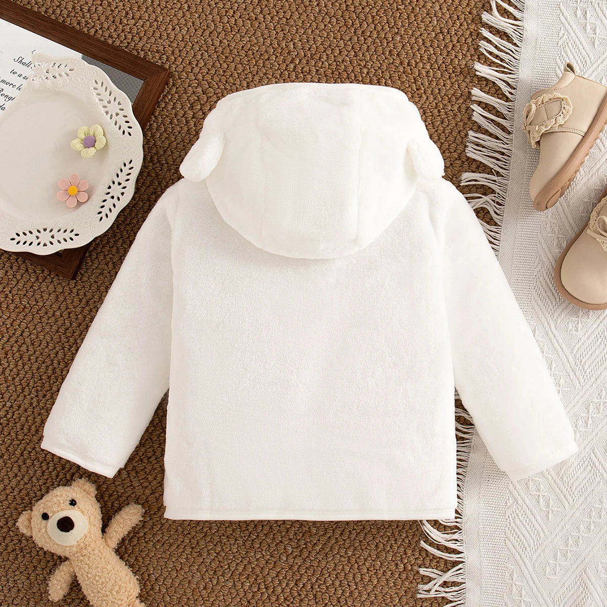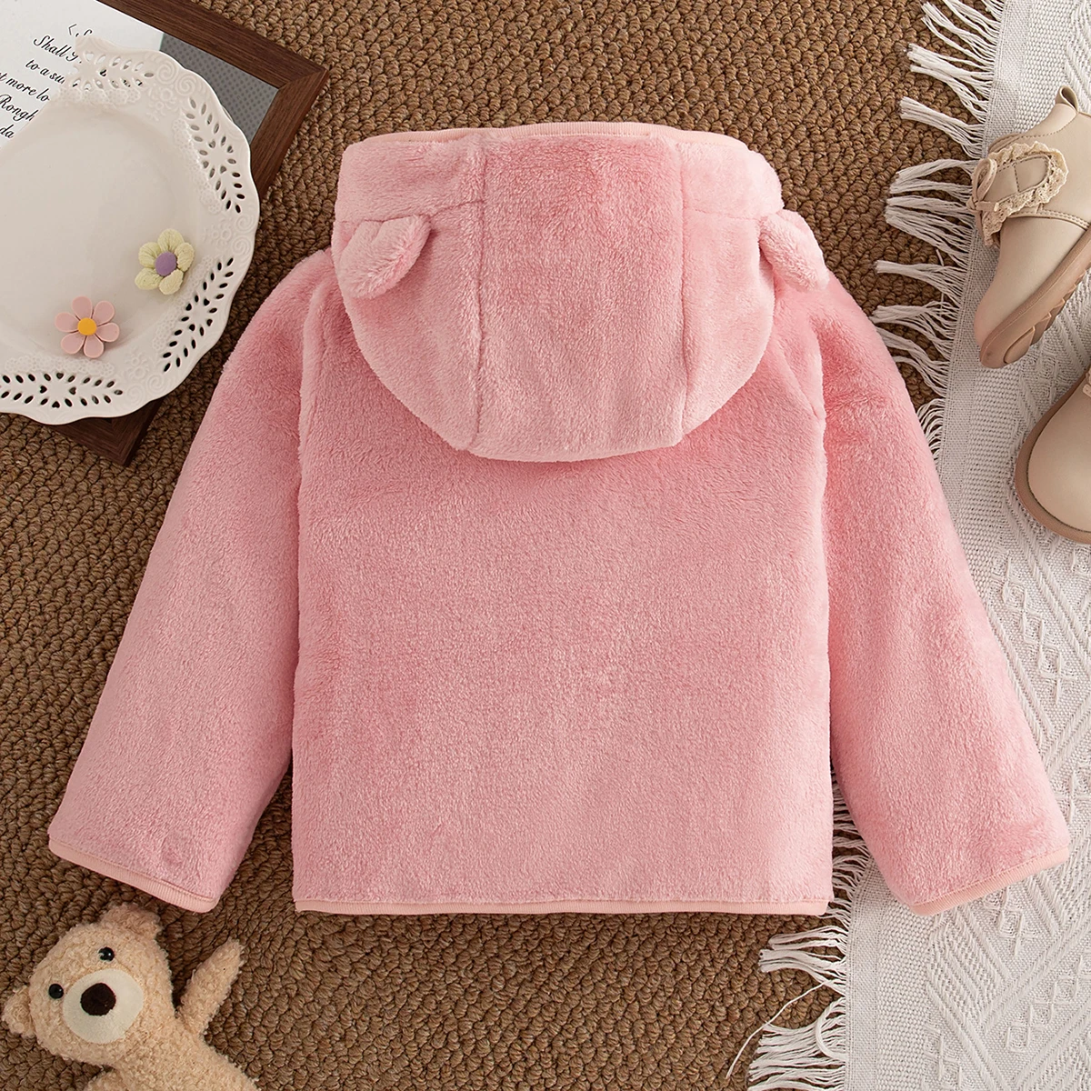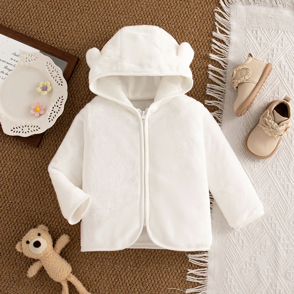 Autumn Winter Baby Girl Plush Coat Simple Zipper Hooded Long Sleeved Cotton Coat Girl Outward Keep Warm Clothes