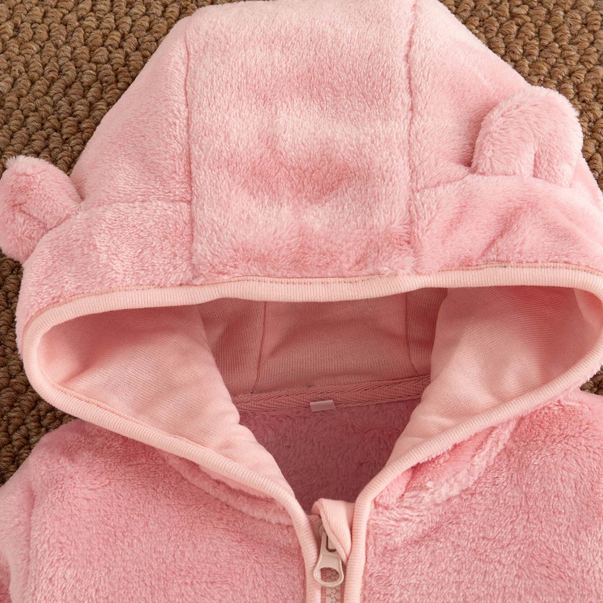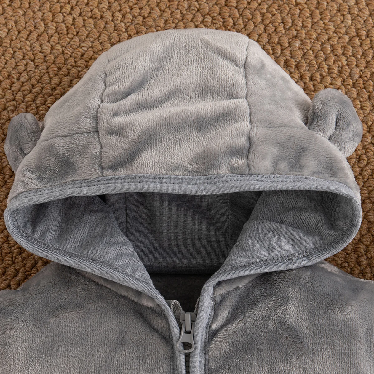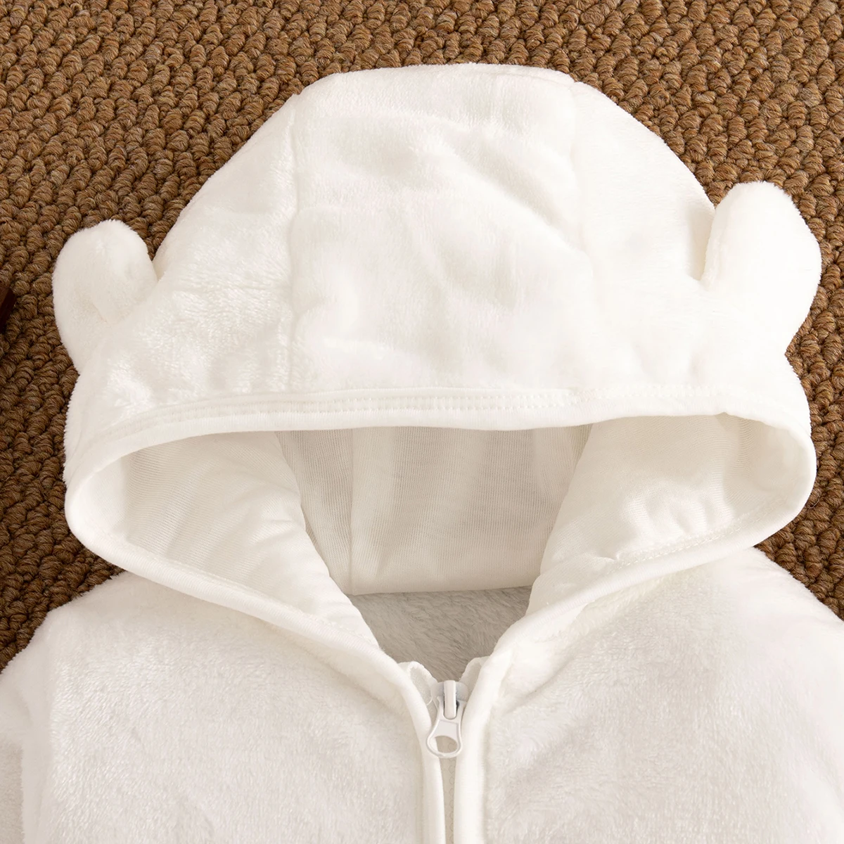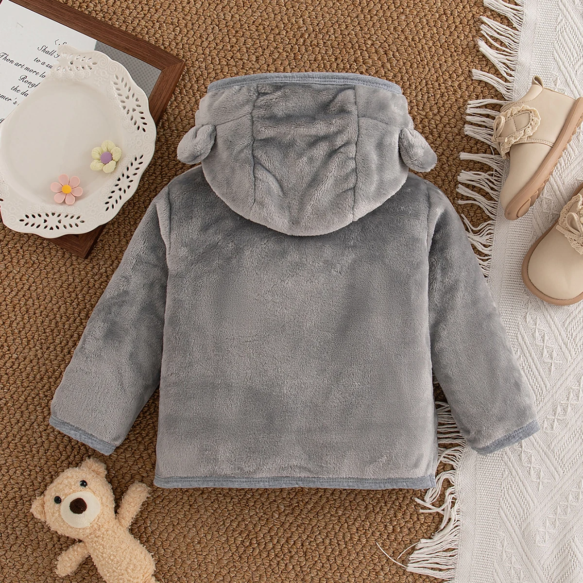 Autumn Winter Baby Girl Plush Coat Simple Zipper Hooded Long Sleeved Cotton Coat Girl Outward Keep Warm Clothes
