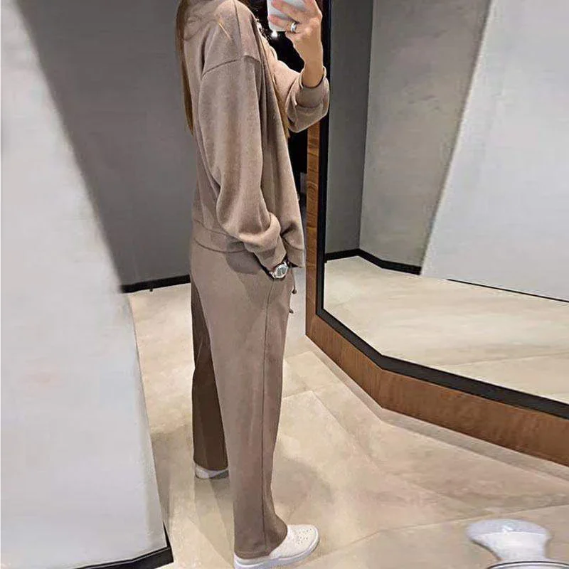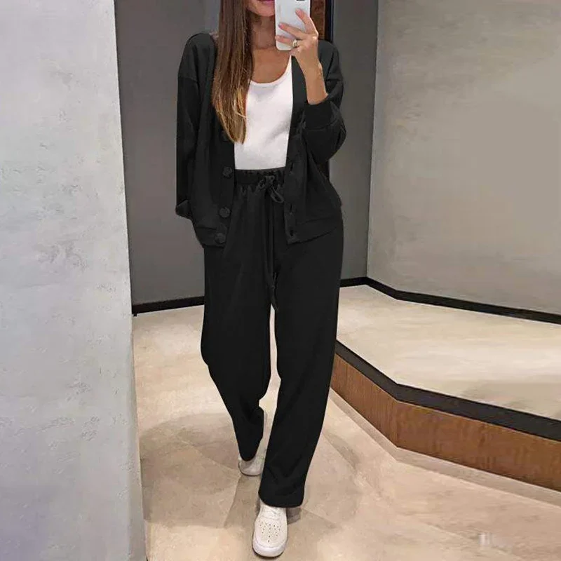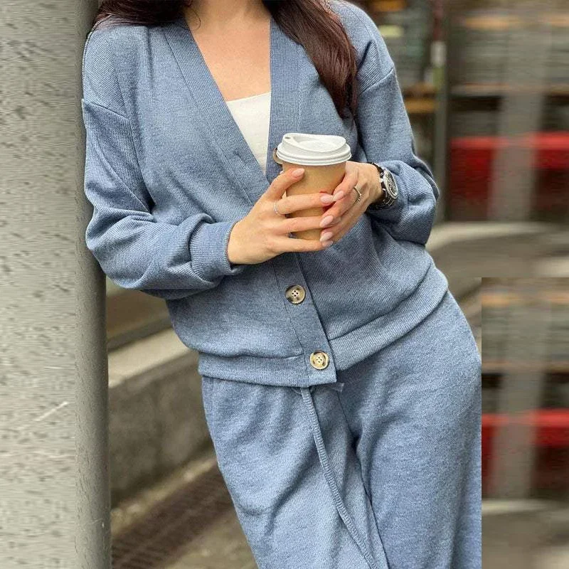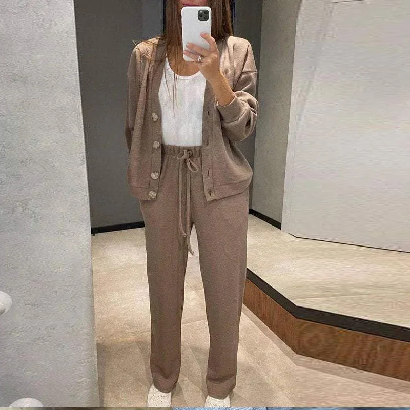 Autumn Winter Women Two Piece Set Button Cardigan Coat Drawstring Plus Size Pants Suit Female Casual Daily Wear