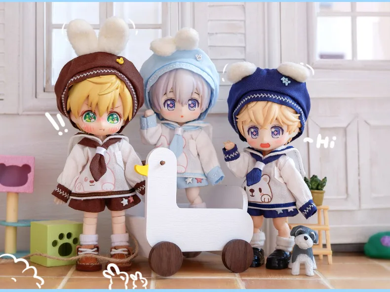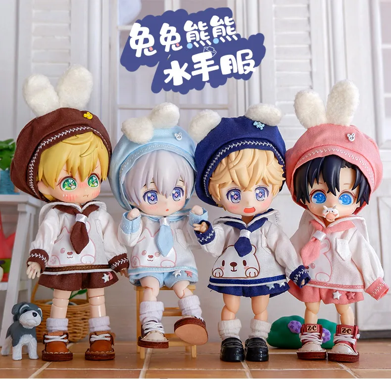 Baby Clothes Top + Hat + Pants/Skirt For 1/12 BJD,Ob11,Molly, Gsc,Body9 Doll Accessories Boys Girls Toys