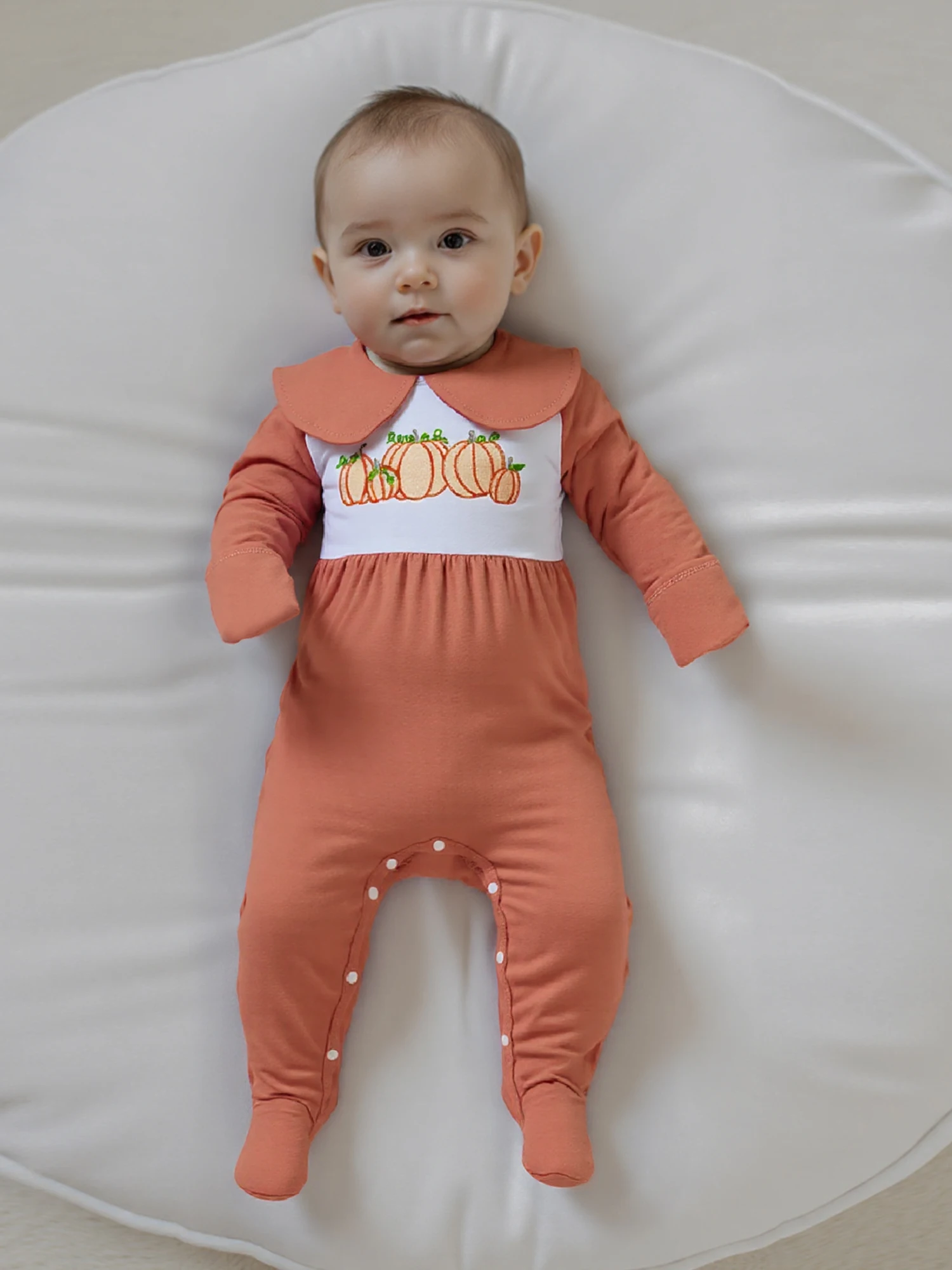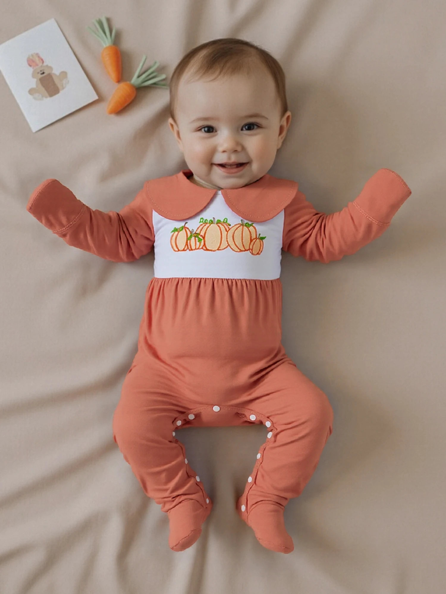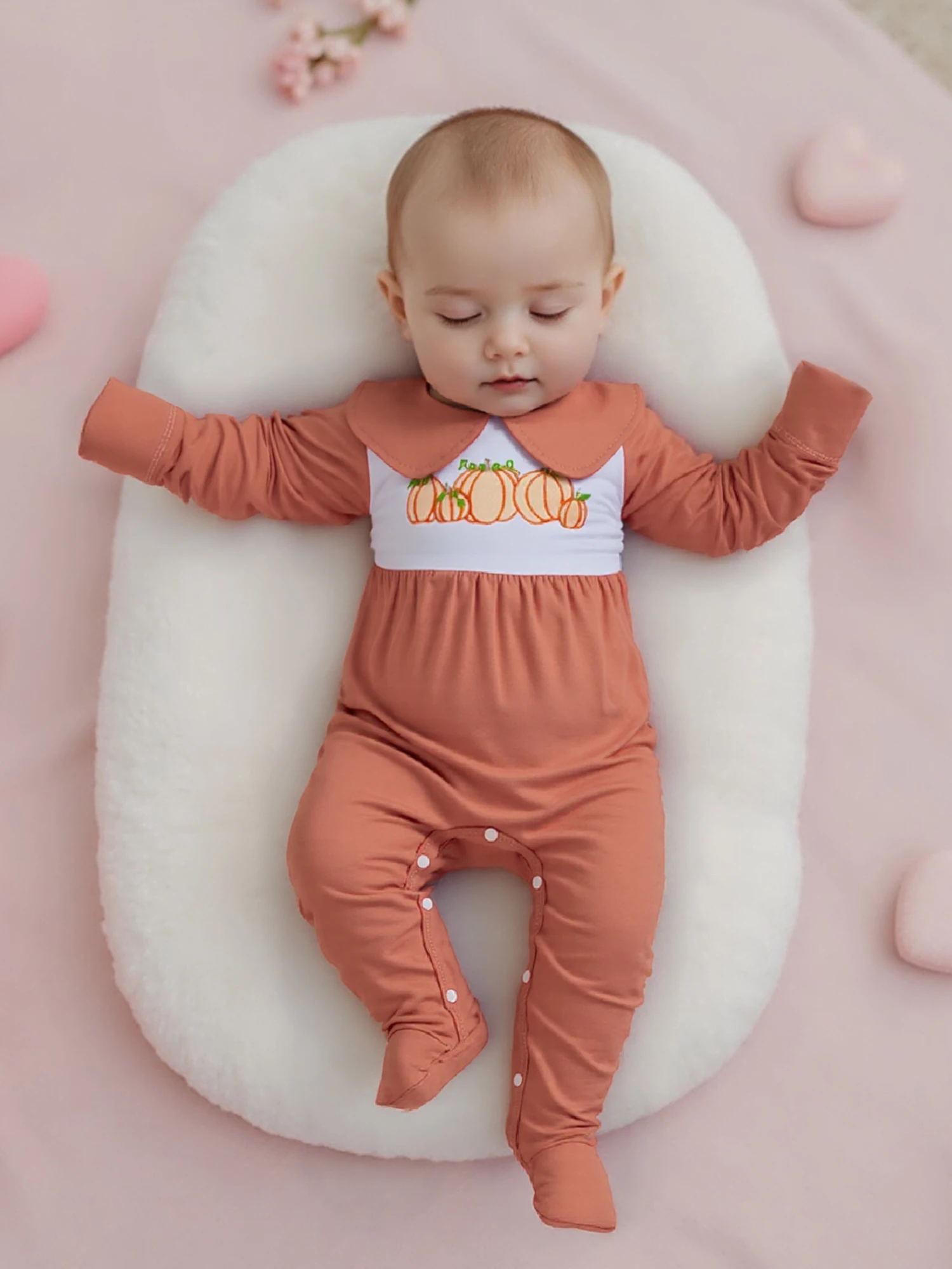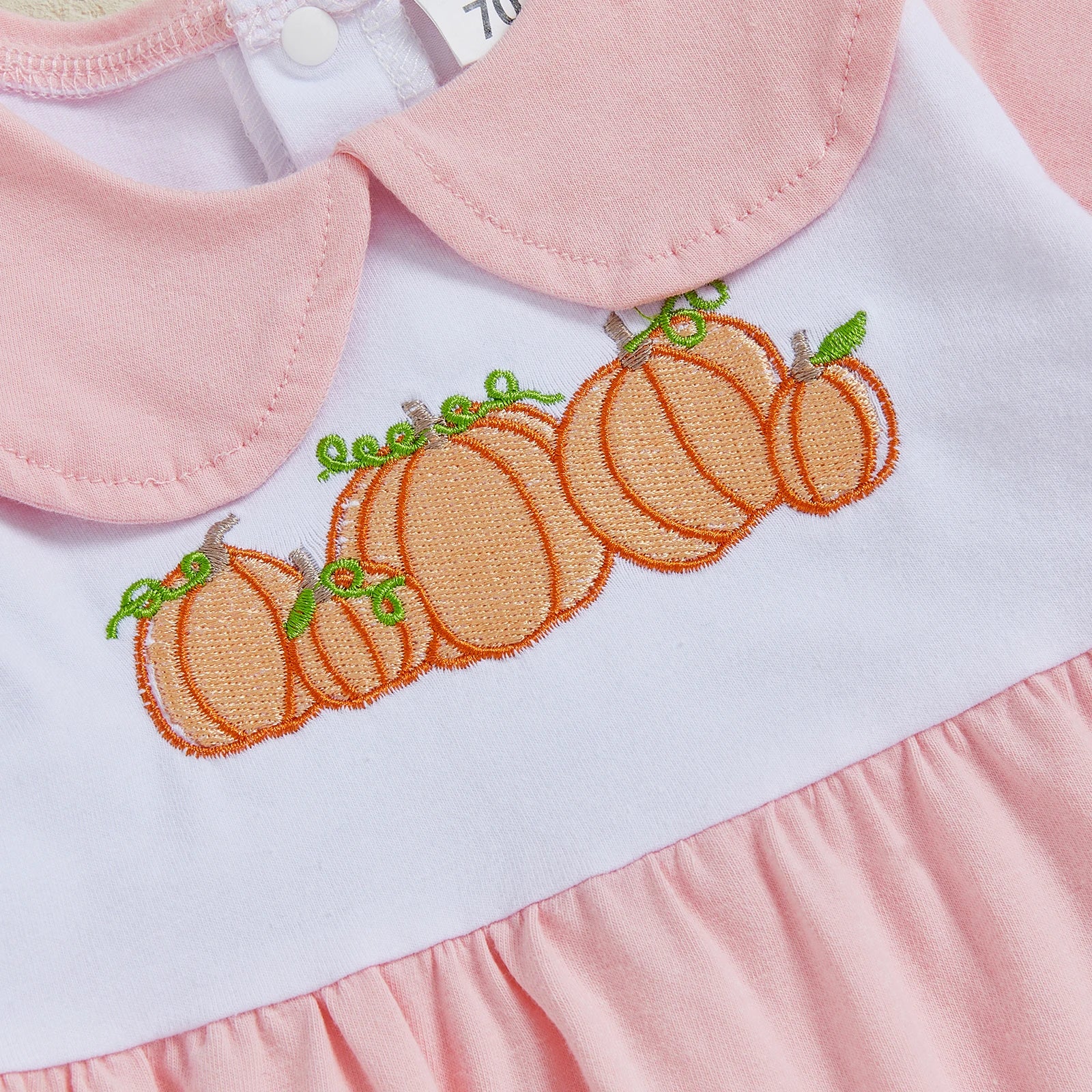 Baby Girl Halloween Romper Pumpkin Embroidered Doll Collar Long Sleeve Footie Pajama Cute Winter Fall Clothes