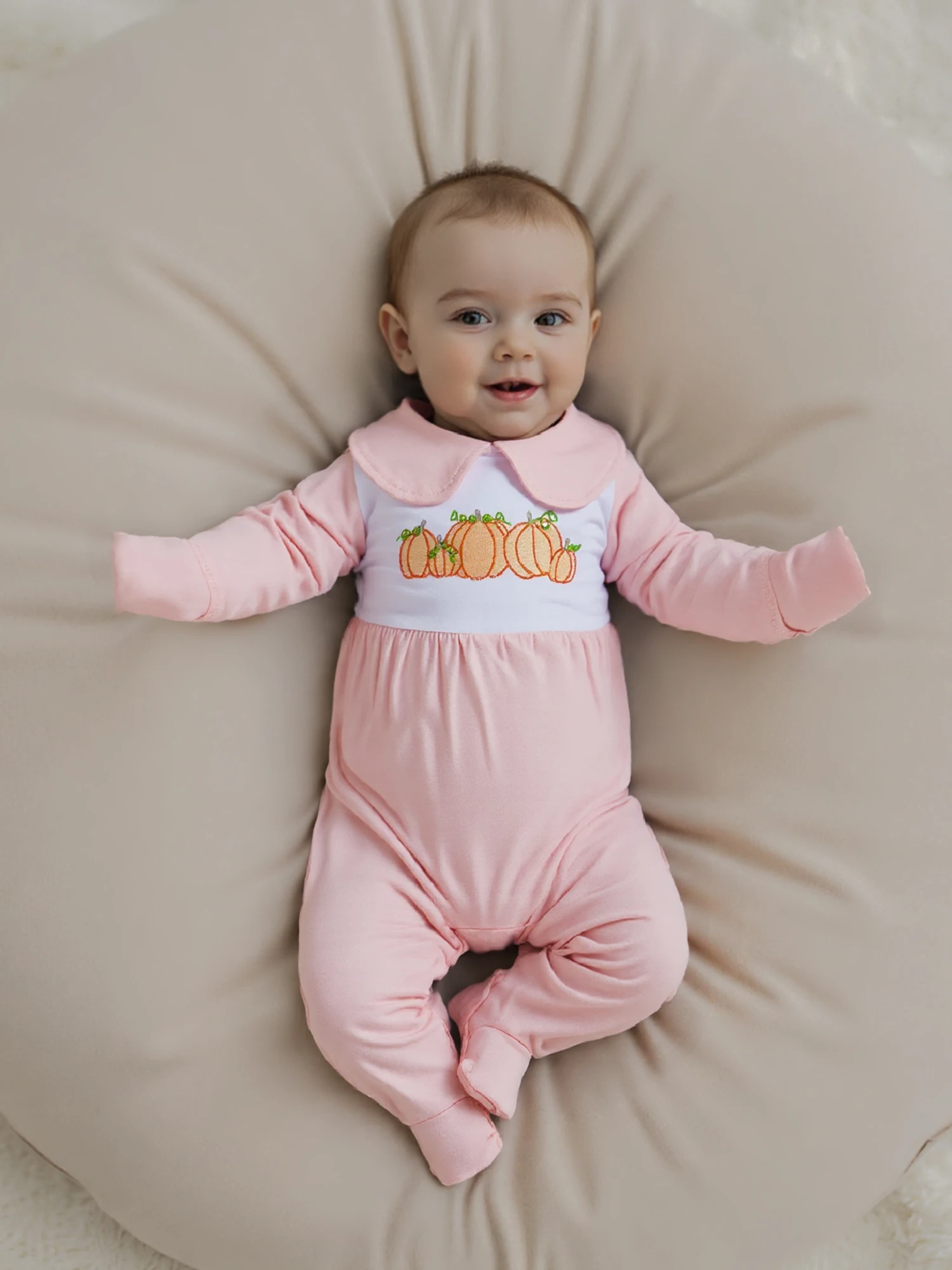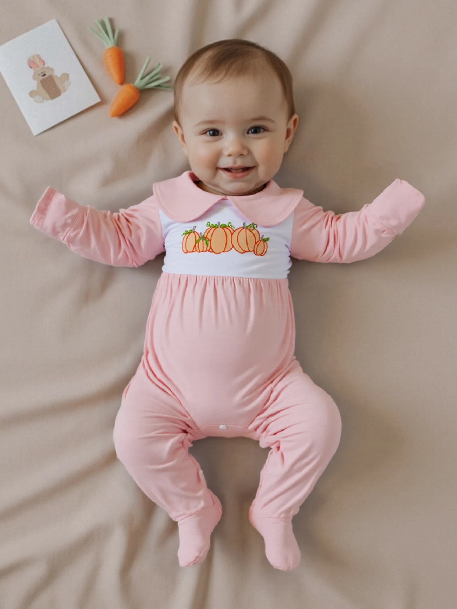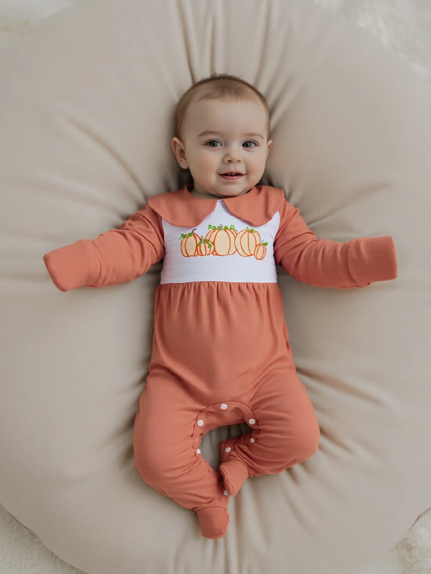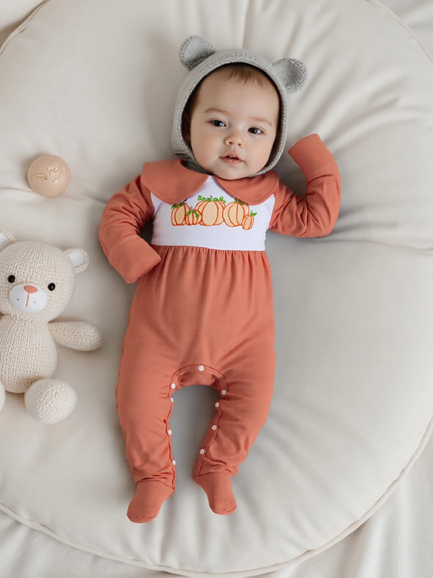 Baby Girl Halloween Romper Pumpkin Embroidered Doll Collar Long Sleeve Footie Pajama Cute Winter Fall Clothes