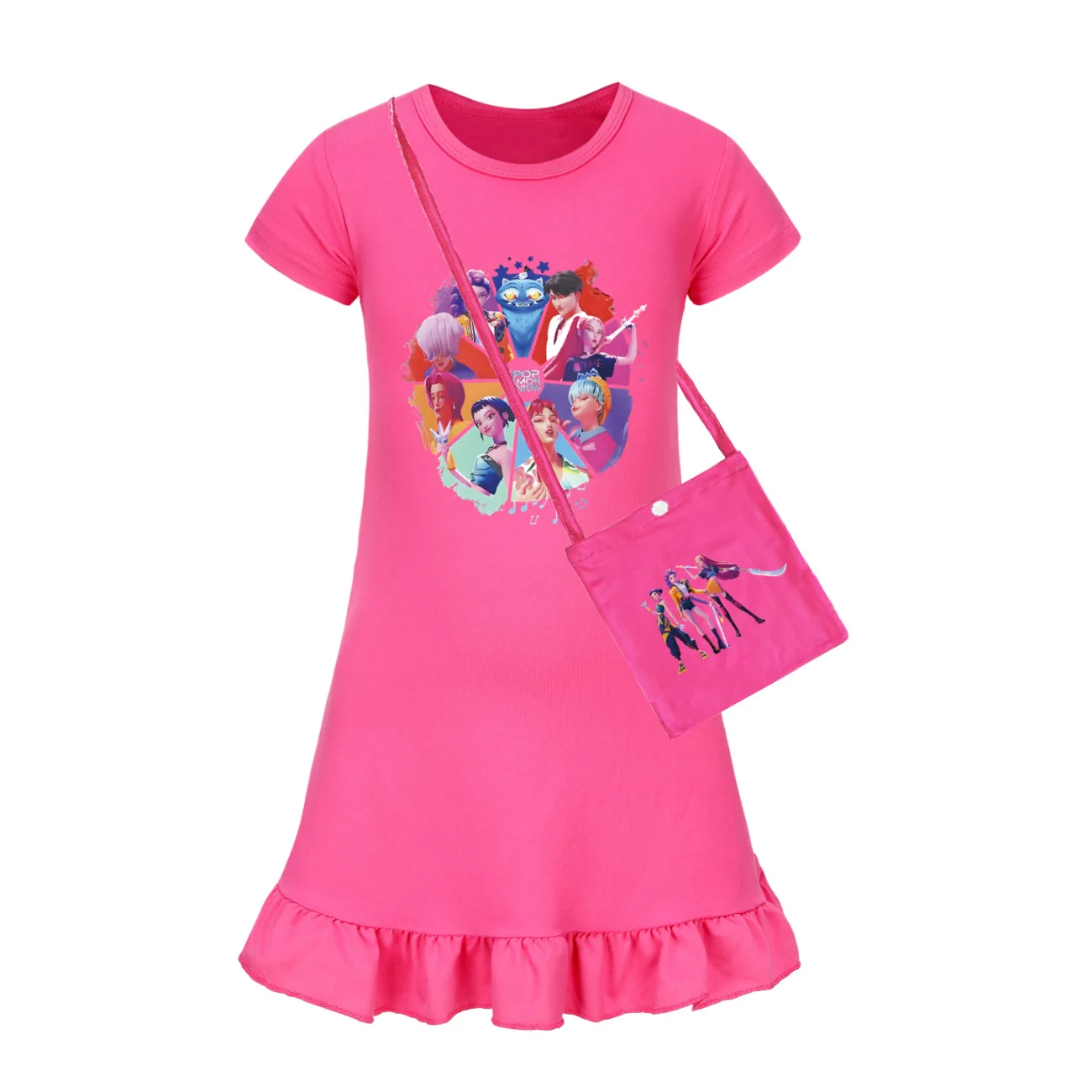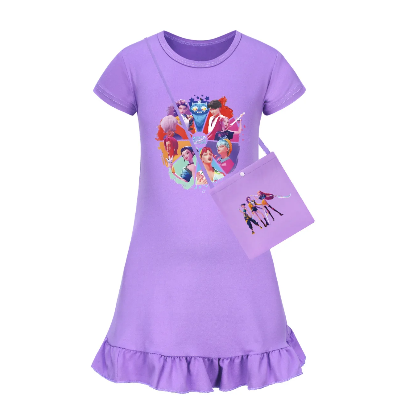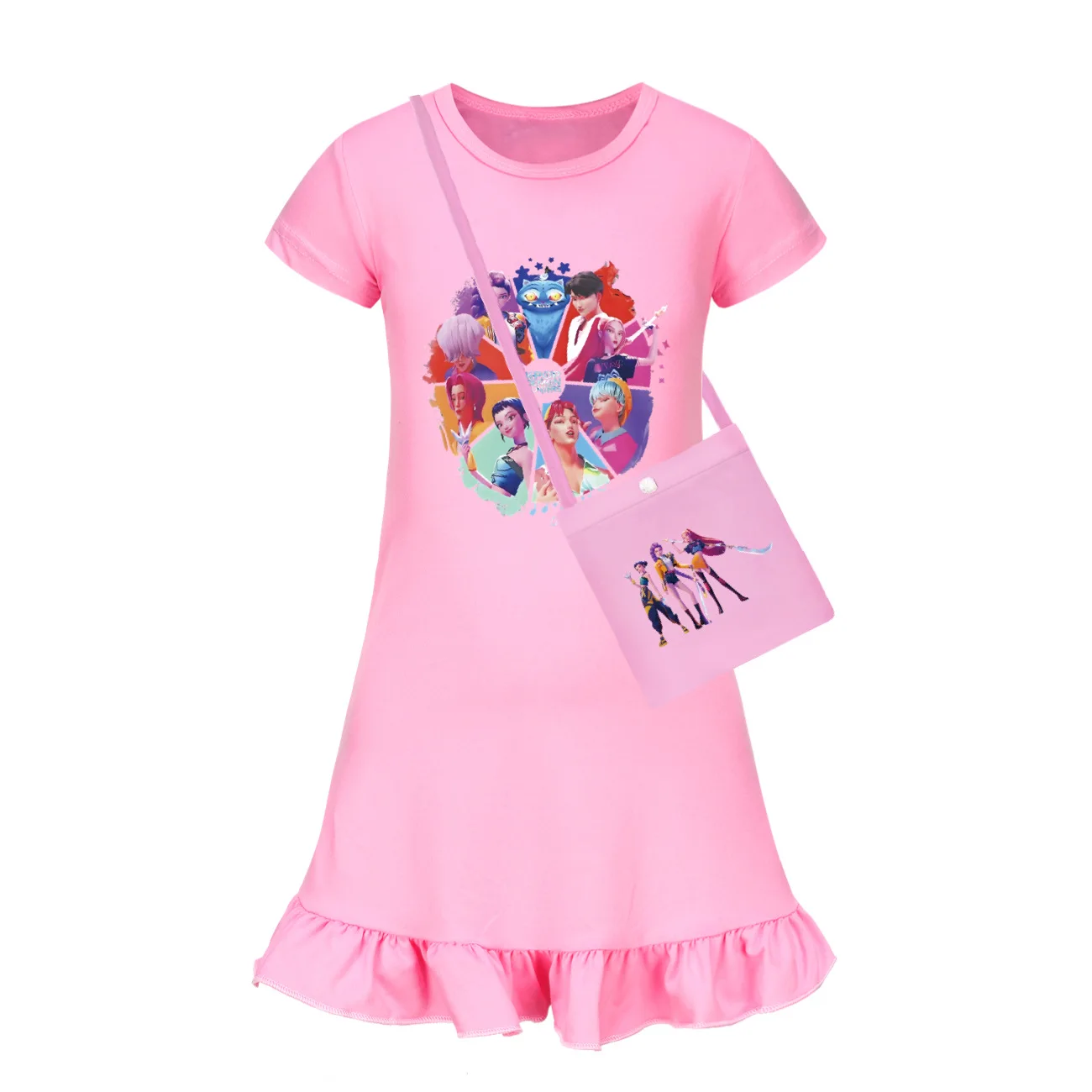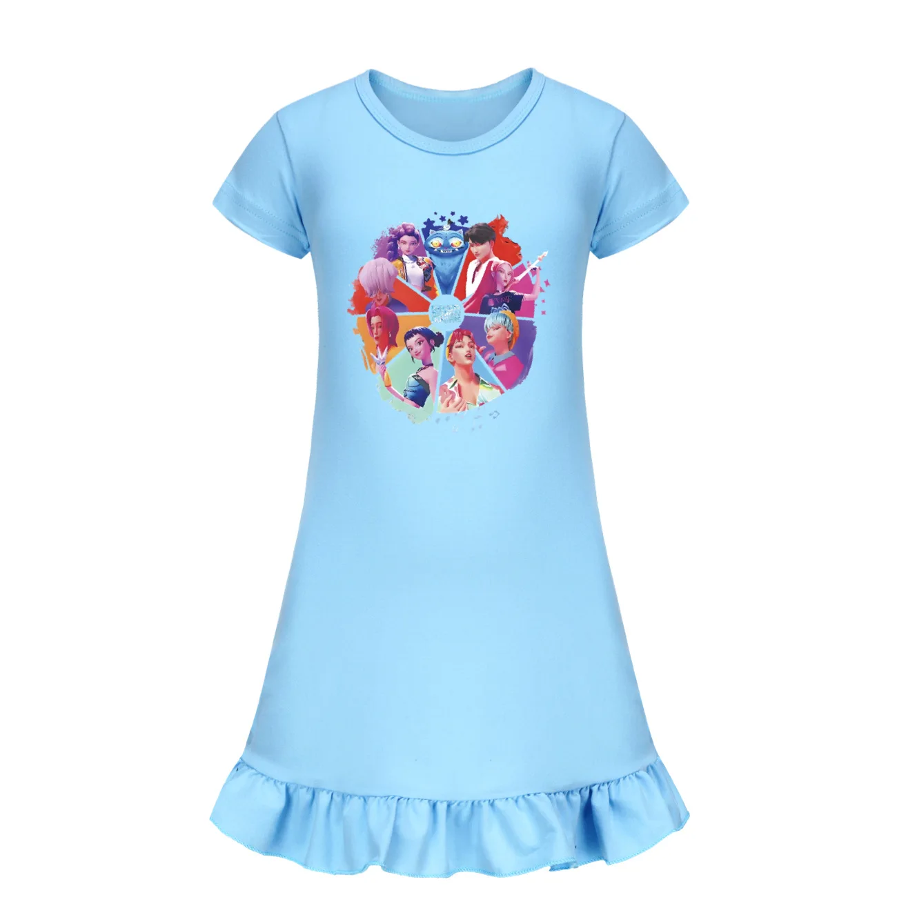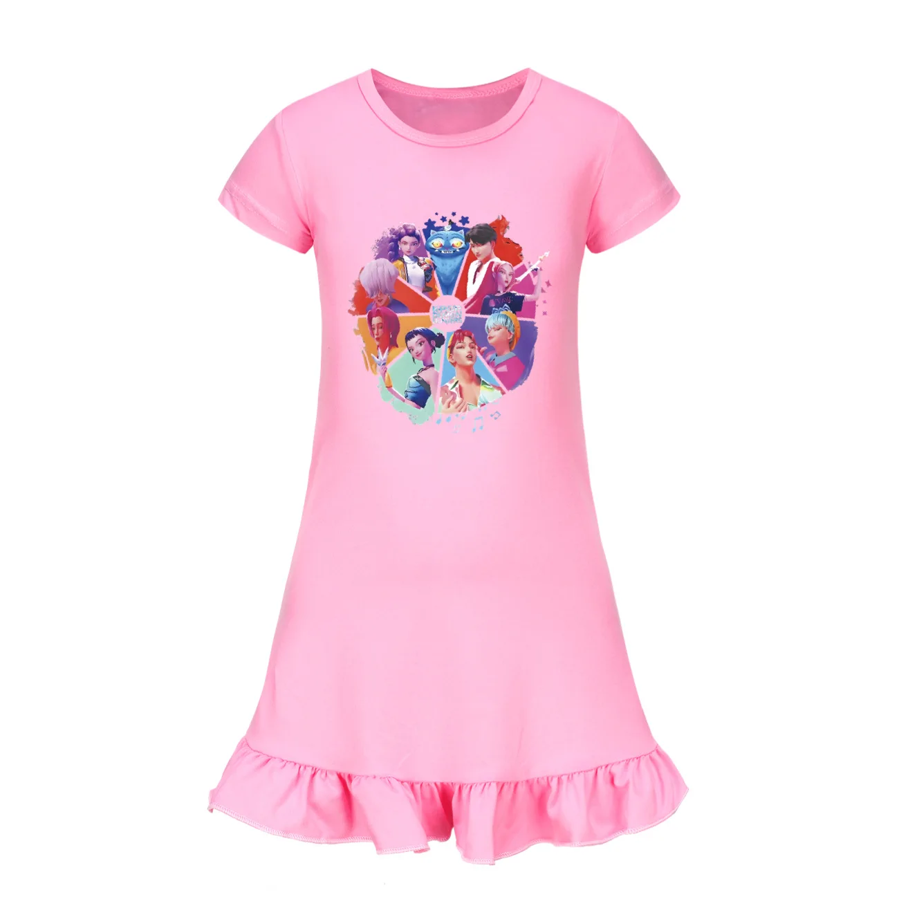 Baby KPop Demon Hunters Kids Summer Sleepdress Short Sleeve Girls Casual Cartoon Nightgown Daily Wear Clothes for Children dress