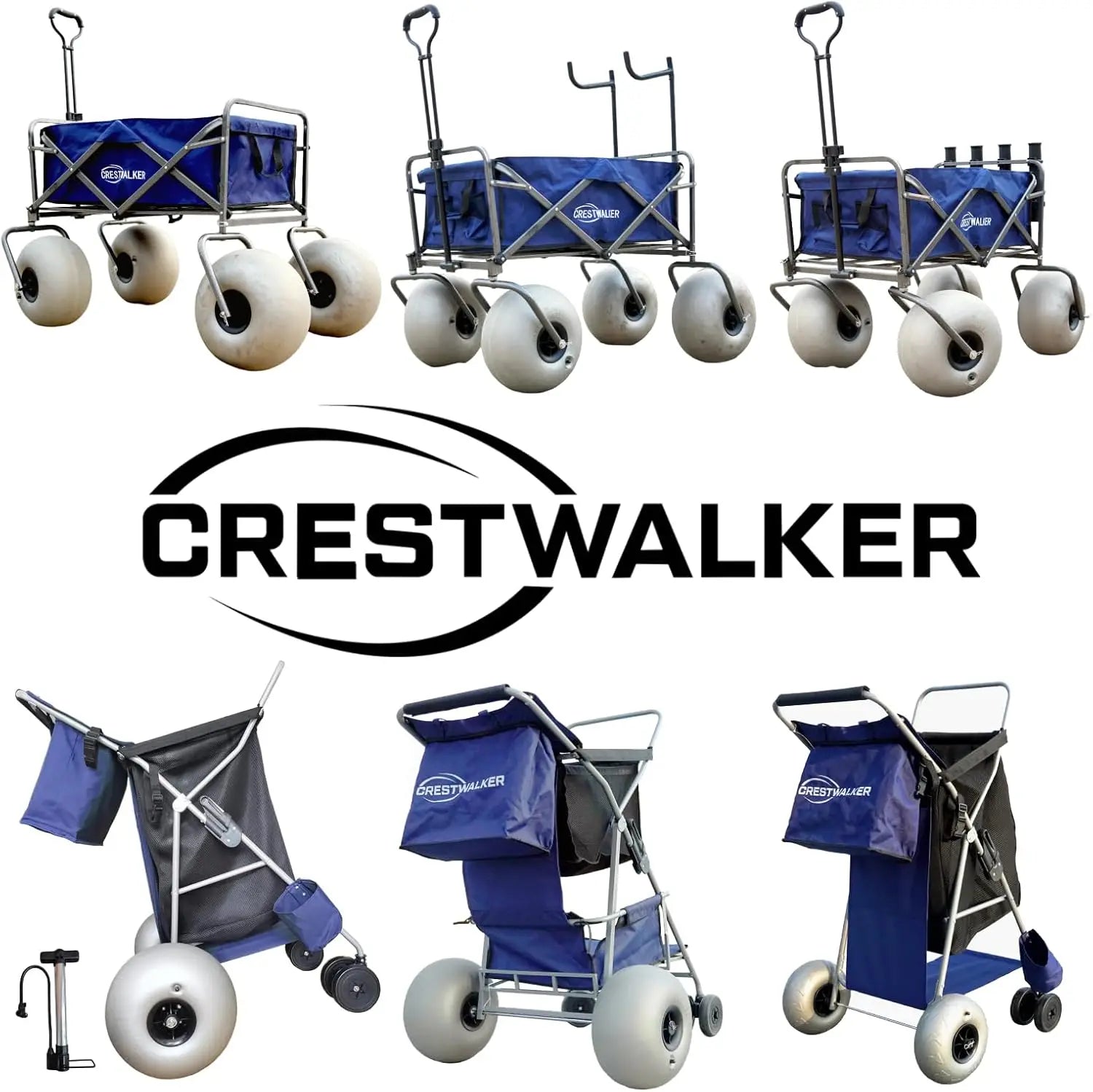 Beach Cart with 13" Balloon Wheels, Collapsible Beach Wagon with Big Wheels for Sand, Pump Included (Beach Wagon)