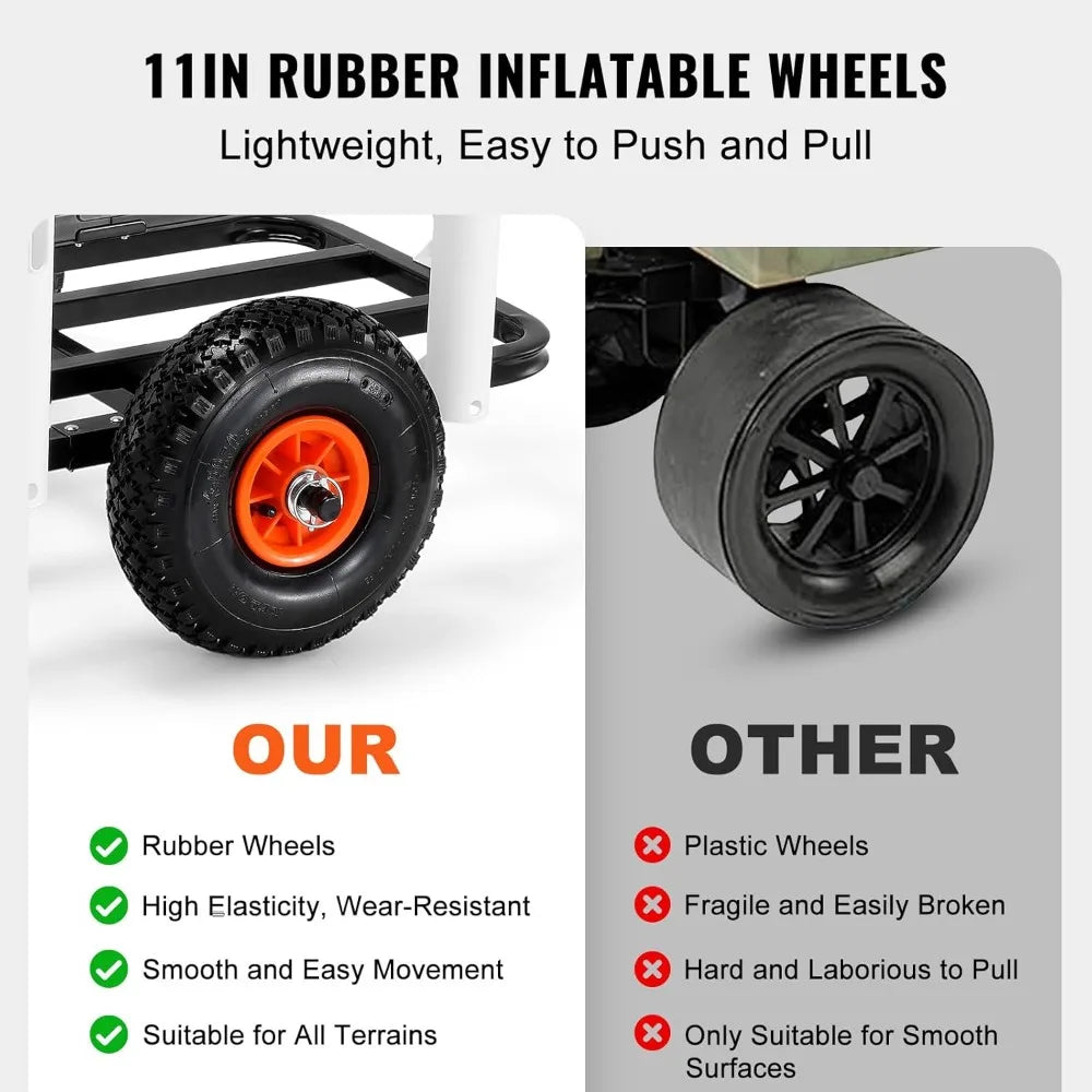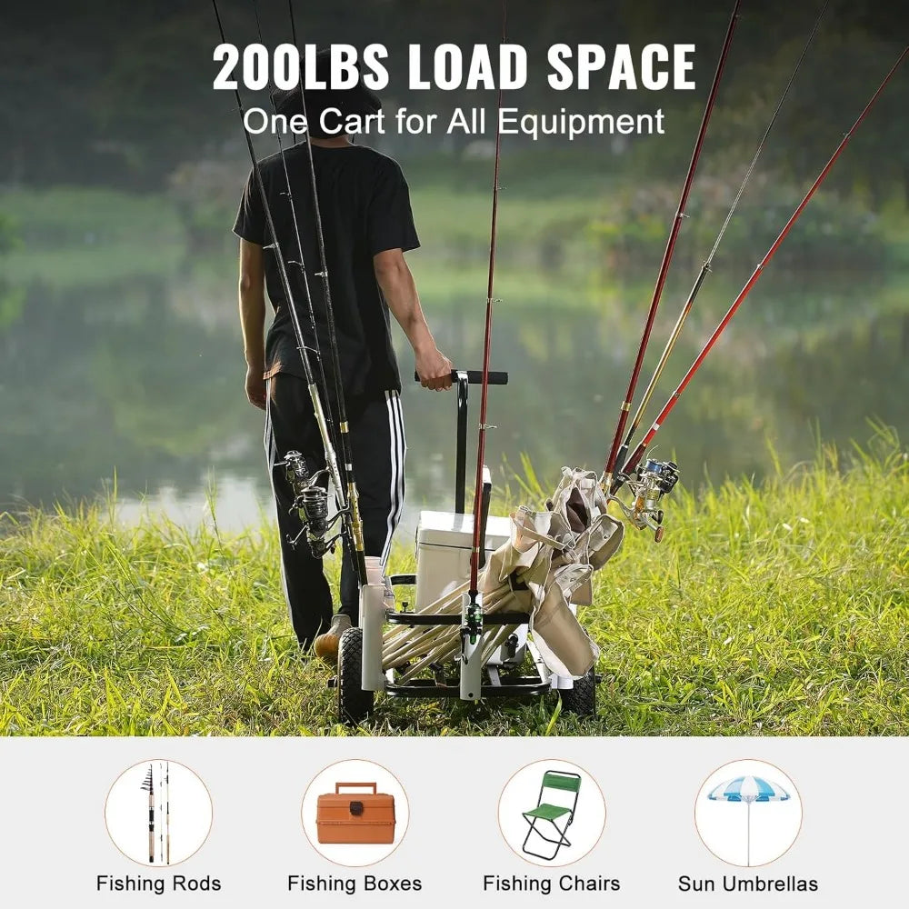 Beach Fishing Cart, 200 lbs Load Capacity, Fish and Marine Cart with Two 11" Big Wheels Rubber Balloon Tires for Sand, Heavy-Du