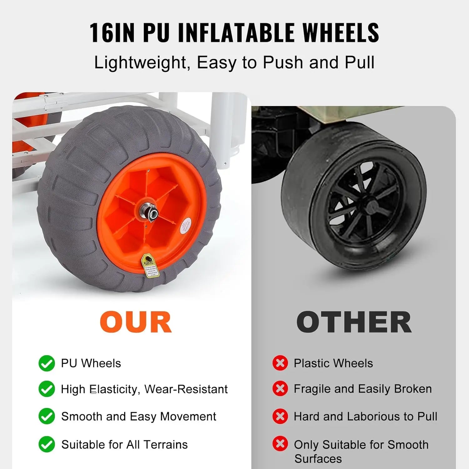 Beach Fishing Cart, 350 lbs Load Capacity, Fish and Marine Cart with Two 16" Big Wheels PU Balloon Tires for Sand