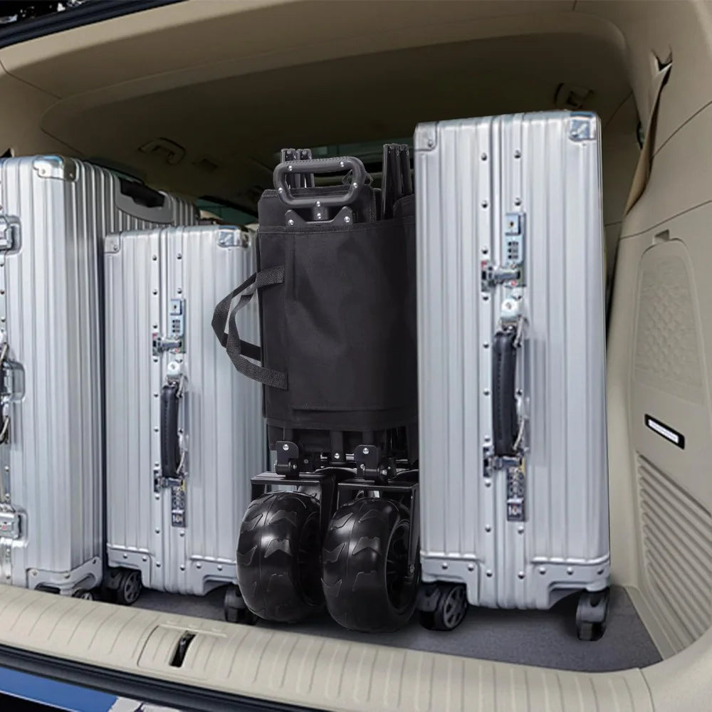 - All-Terrain Balloon-Style Solid Wheels: Experience effortless mobility across all terrains with our beach wagon's innovative 9"x4" airless balloon-style wheels. The extra-wide 4-inch non-slip tread conquers sand, gravel, grass, and rough ground without sinking, while the puncture-proof PU foam construction delivers the smooth ride of pneumatic tires with zero maintenance. Never worry about flats from shells or sharp objects.