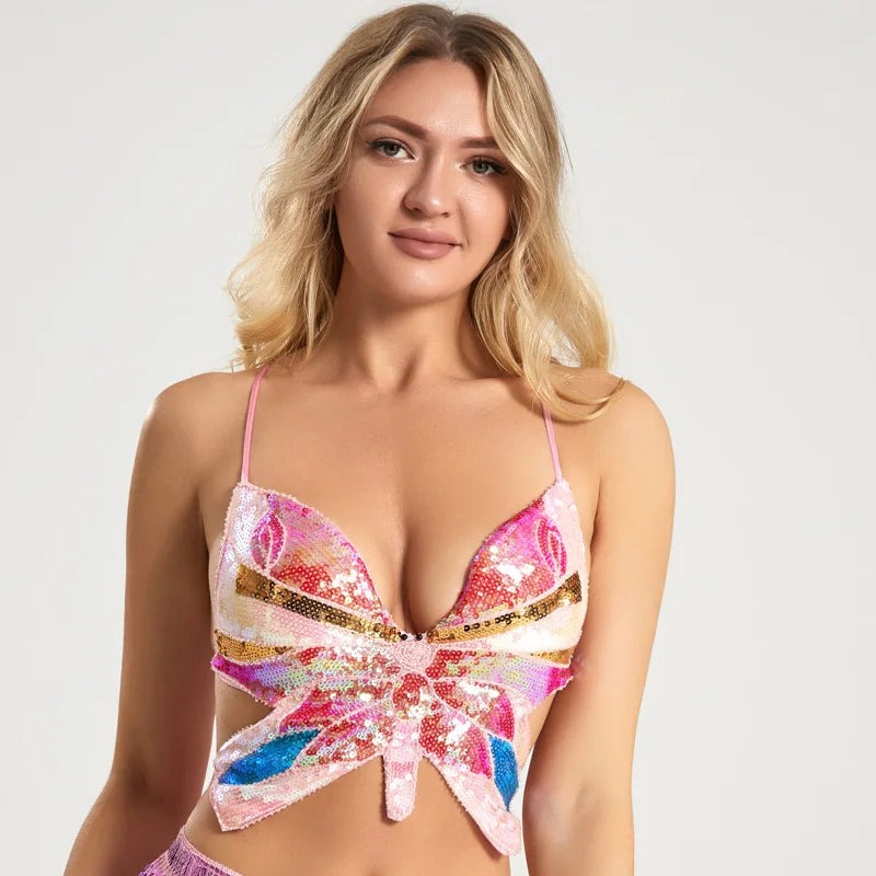 Belly Dance Tops DS Nightclub Show Sequined Top Butterfly Bra Corset Female Dance Sling Top