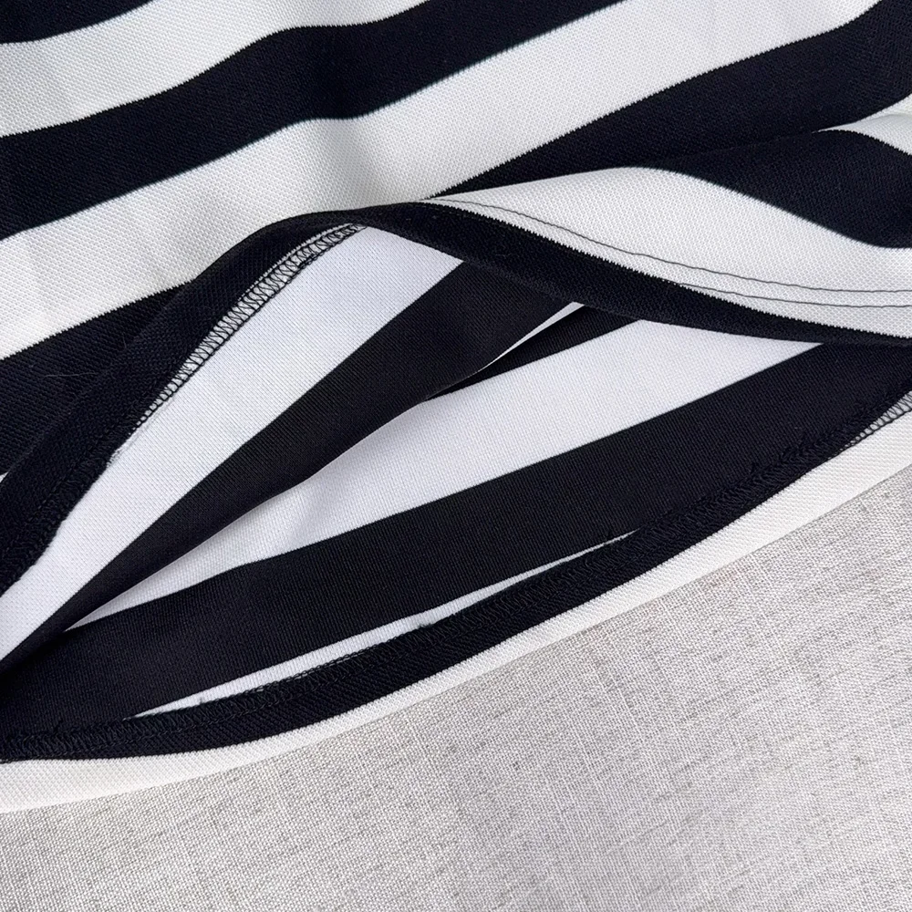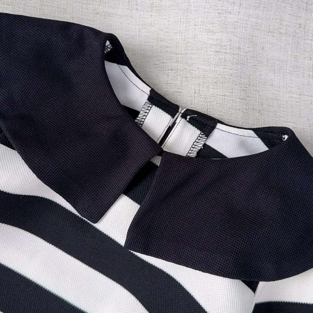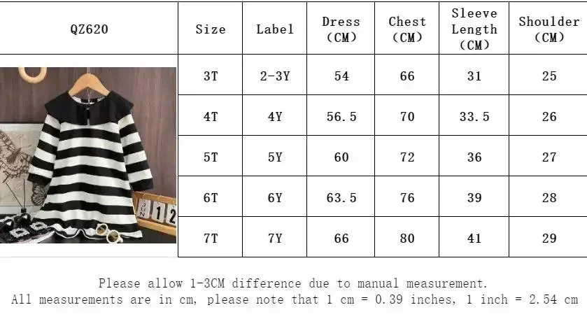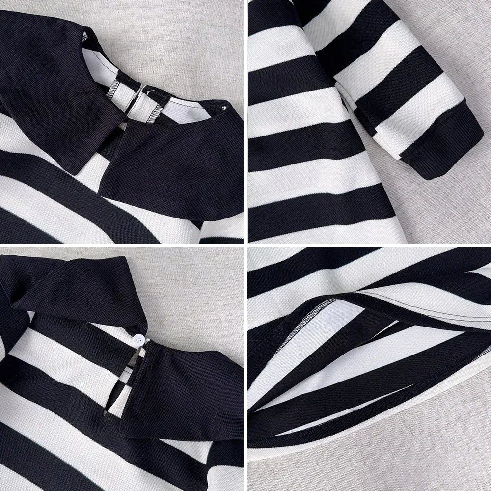 Black and White Fashion Korean Version Autumn New Girls' Casual Clothes Lapel Striped Long Sleeved Dress for Children Aged 3-7