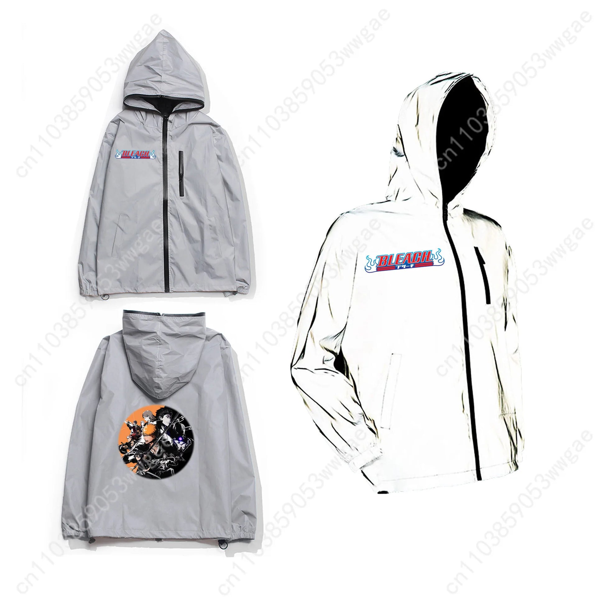 Bleach Reflective Jacket Mens Womens Coat Hooded Windbreaker Run Pocket Jackets Cycling Hiking Zipper Anime Personalized Hoodie
