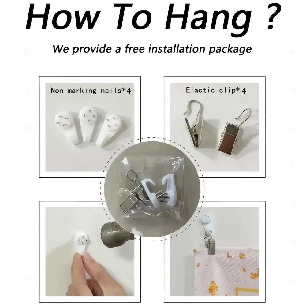 Indoor : living room, bedroom, children's room, etc., as a wall decoration or bed blanket.