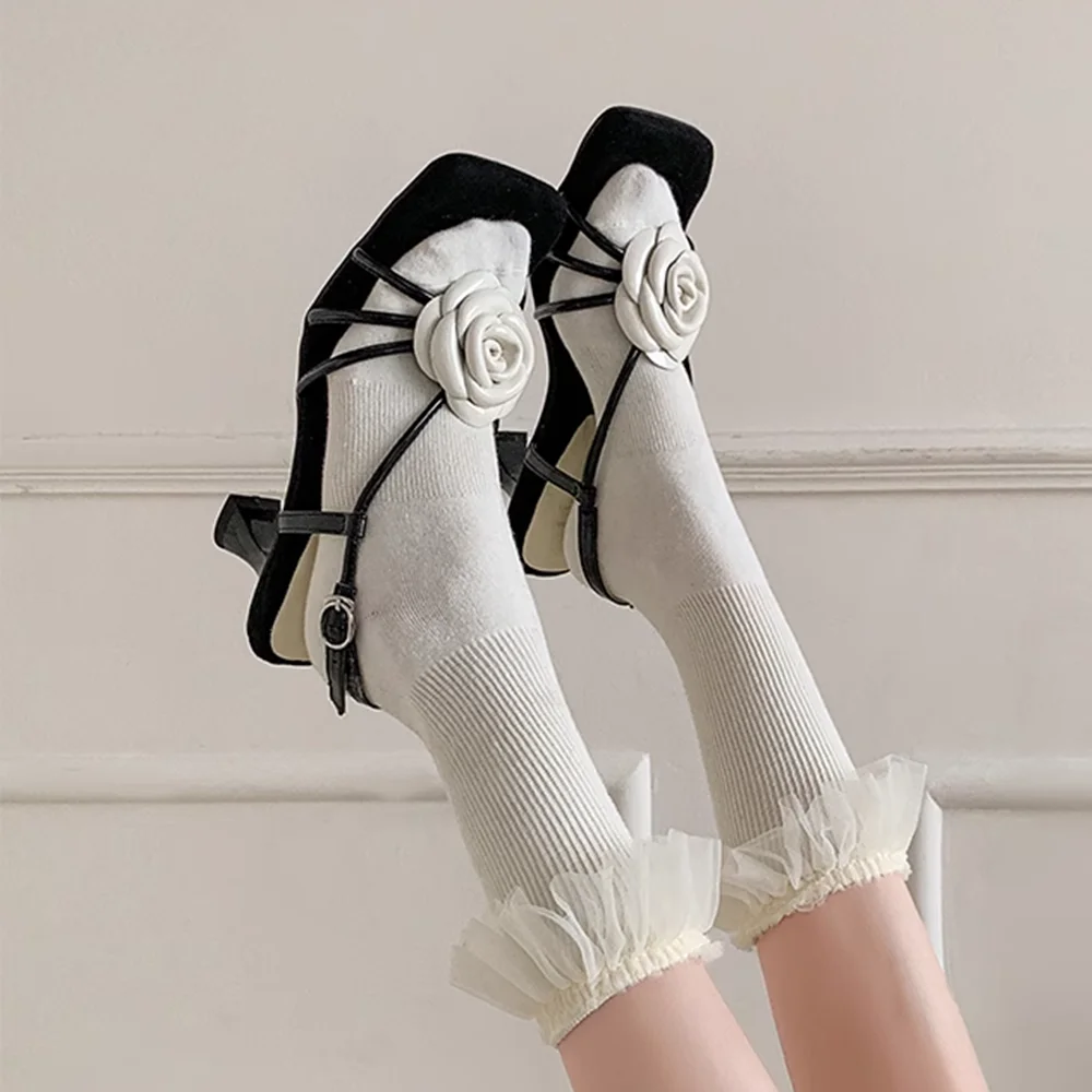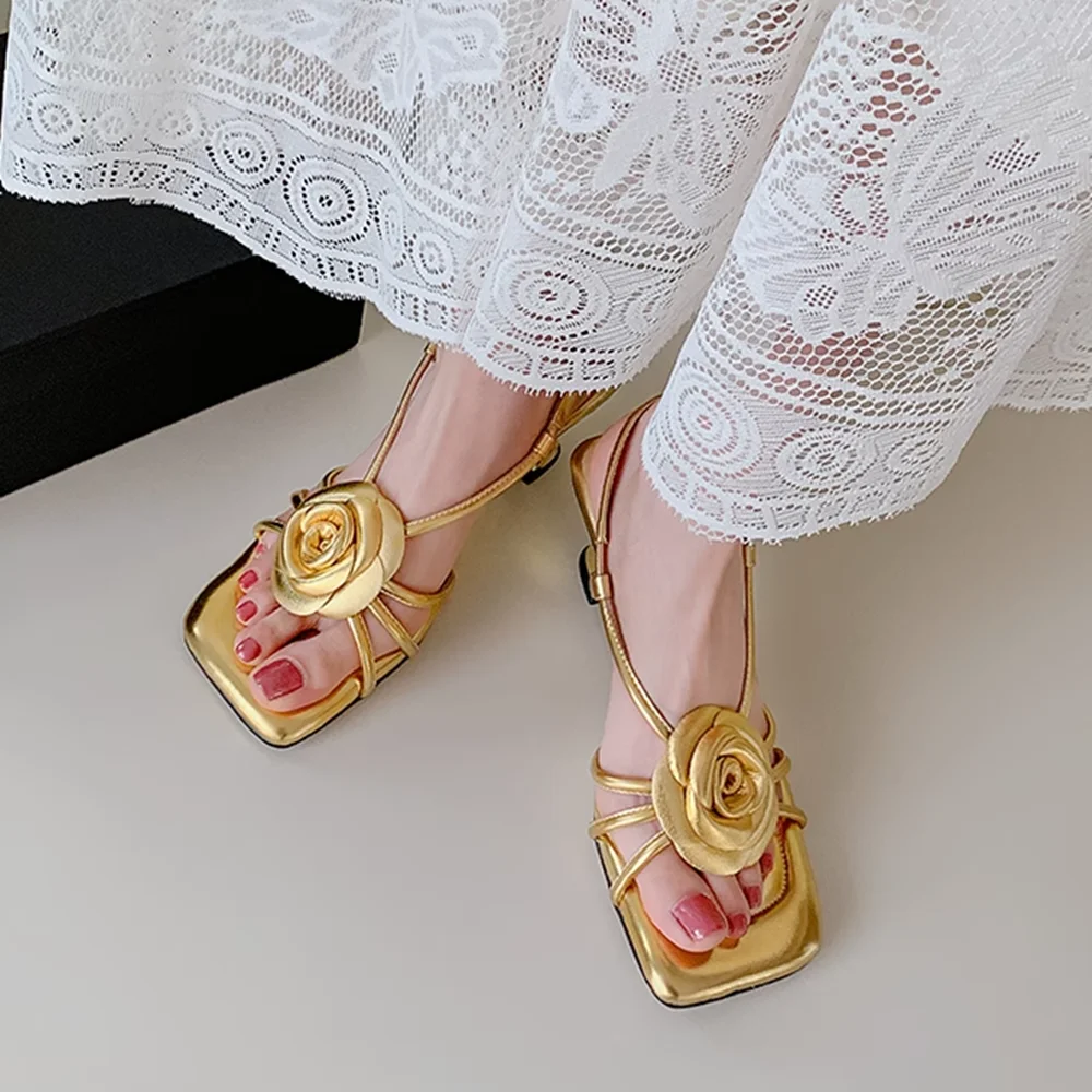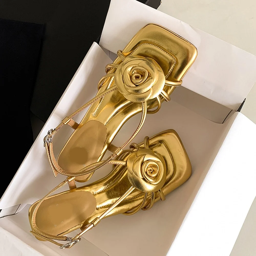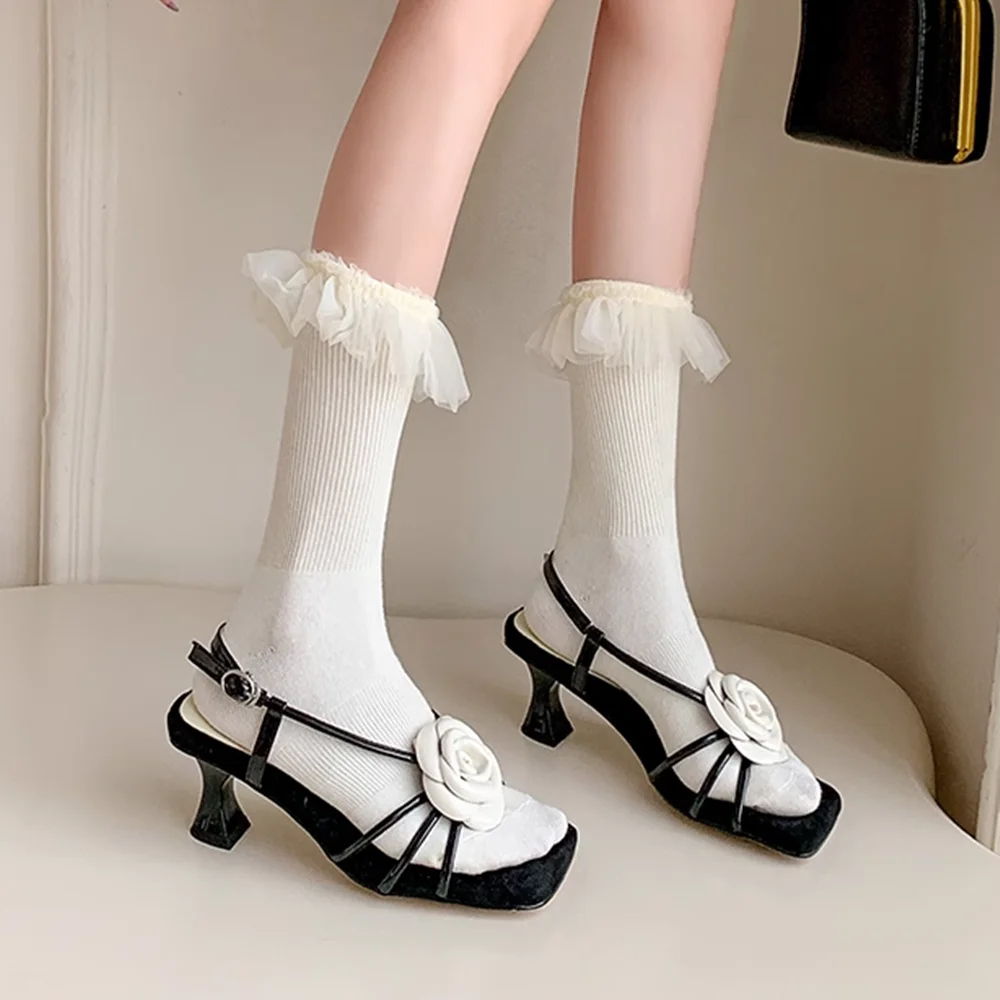 Camllia Decoration Cross Tied Sandals Sexy Square Toe Thin Heel Slingback Ankle Warp New Arrivals Fashion Womne Modern Shoes