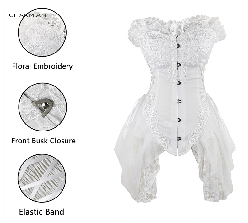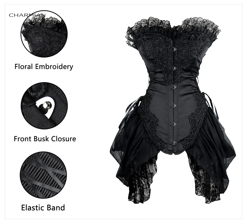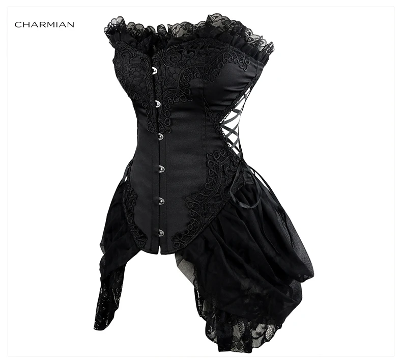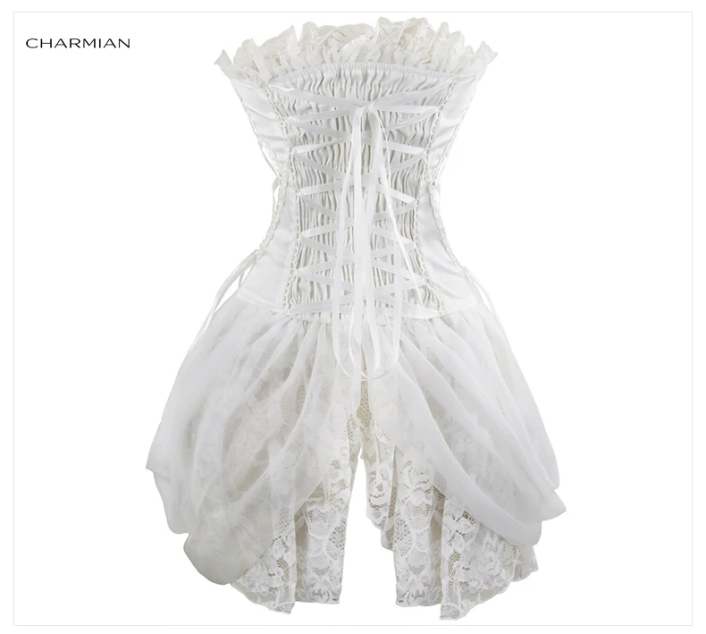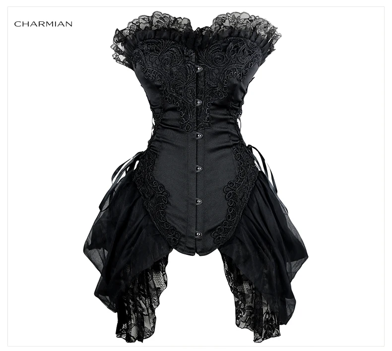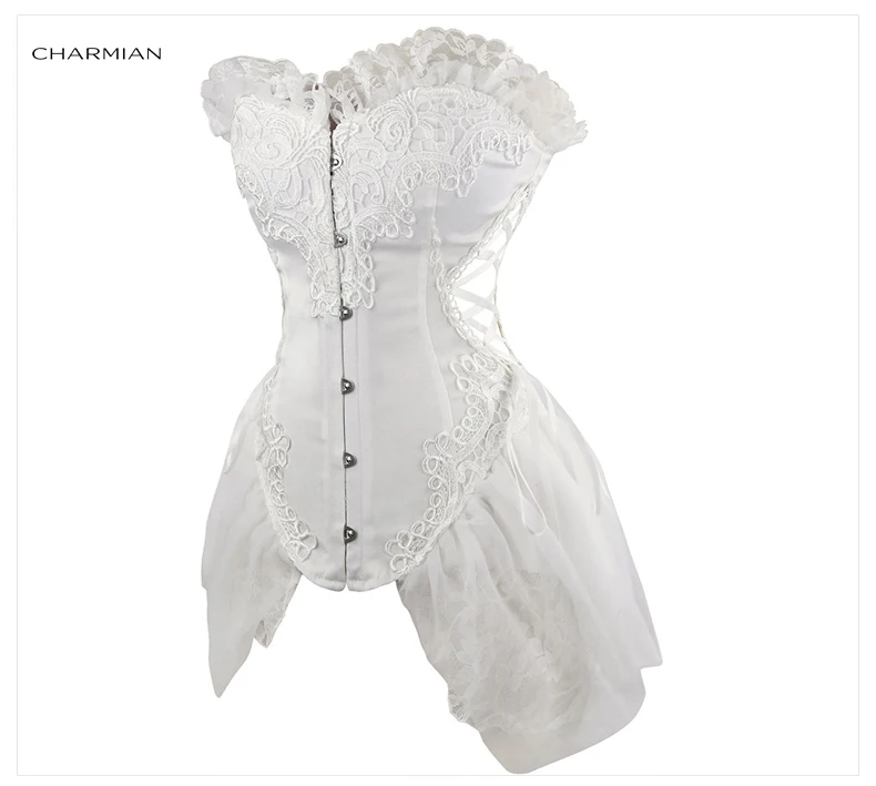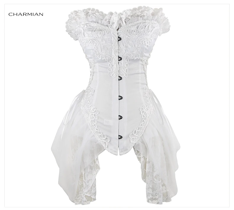 Charmian Burlesque Corset Fantasy Women Sexy Gothic Strapless Floral Lace Plus Size Lace Up Corset with Skirt Bustier Lingerie