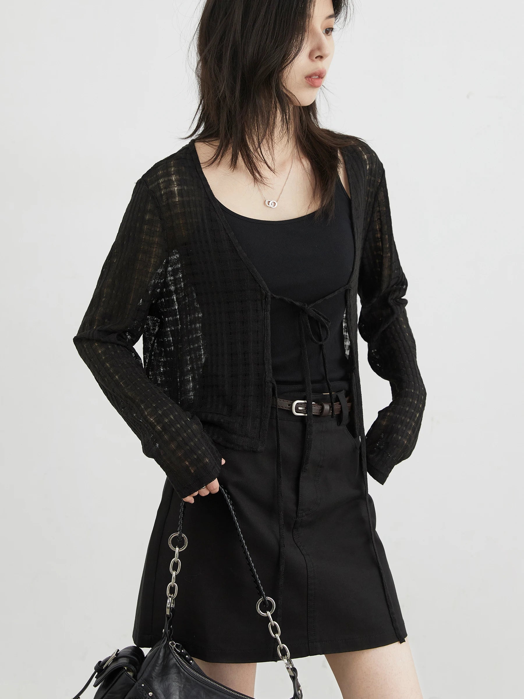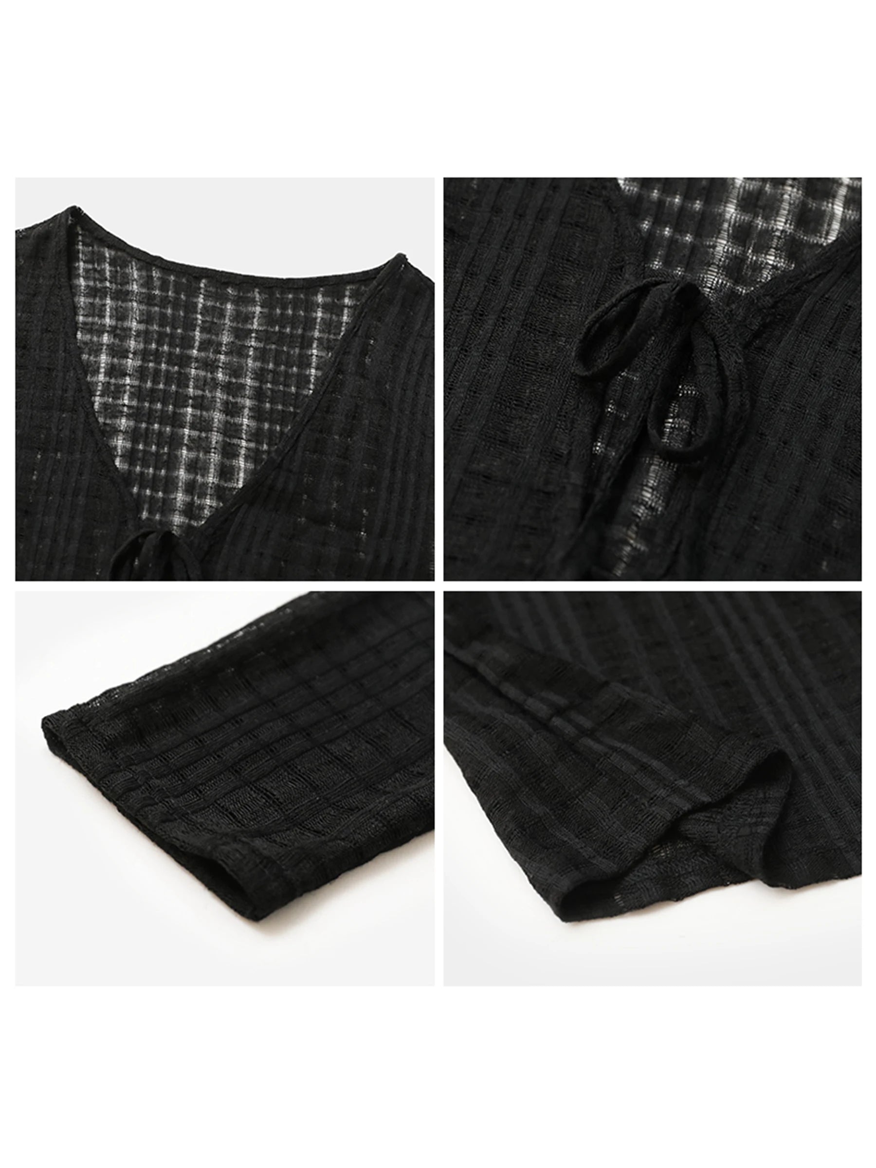 CHIC VEN Women Cardigan Loose Casual New Solid V-neck Lace Up Knitted Sweaters Hollow Out Female Short Coat Spring Autumn 2025
