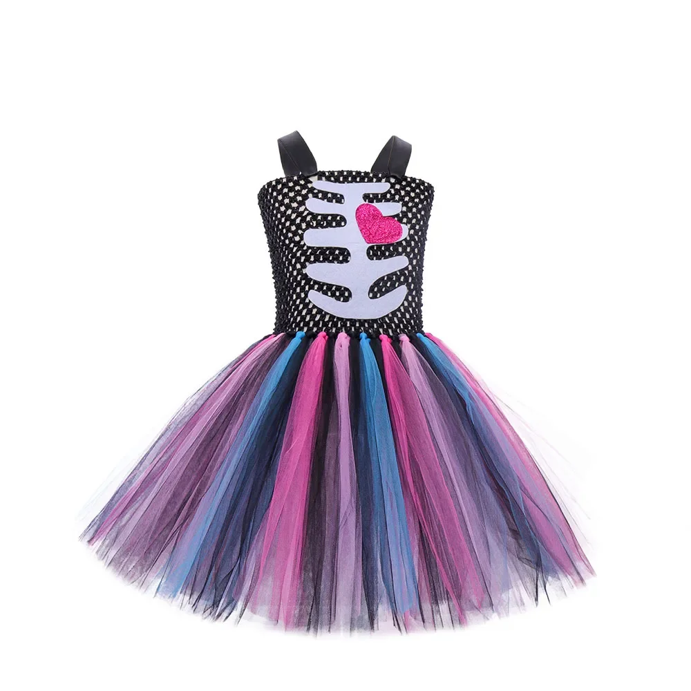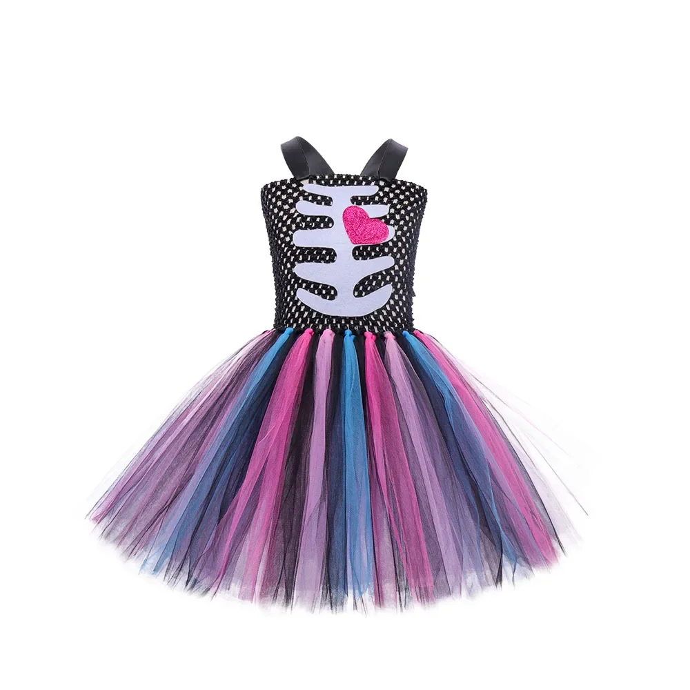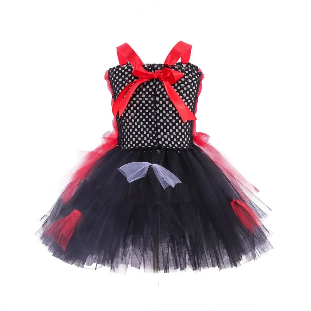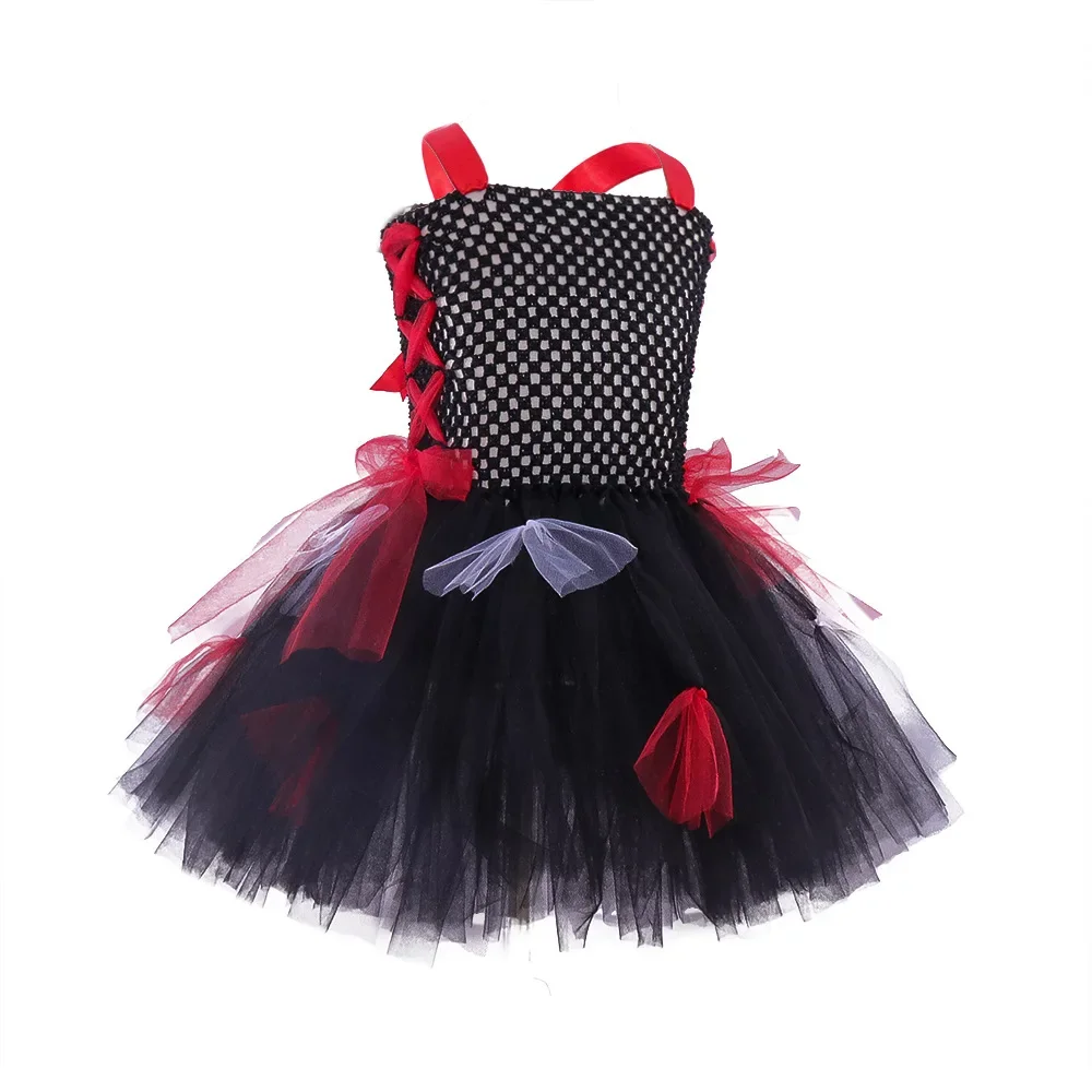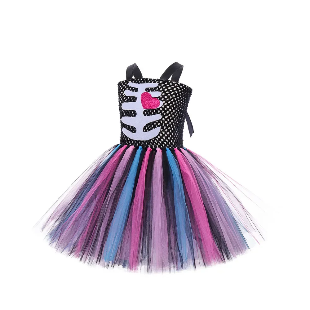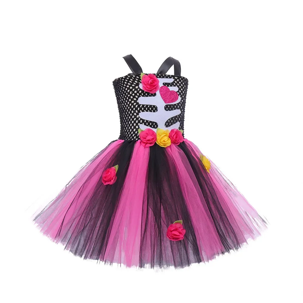 Children's Halloween Zombie Bride Horror Skeleton Vampire Puff Dress Flower Tutu Dress Stage Role Playing Sleeveless Dress