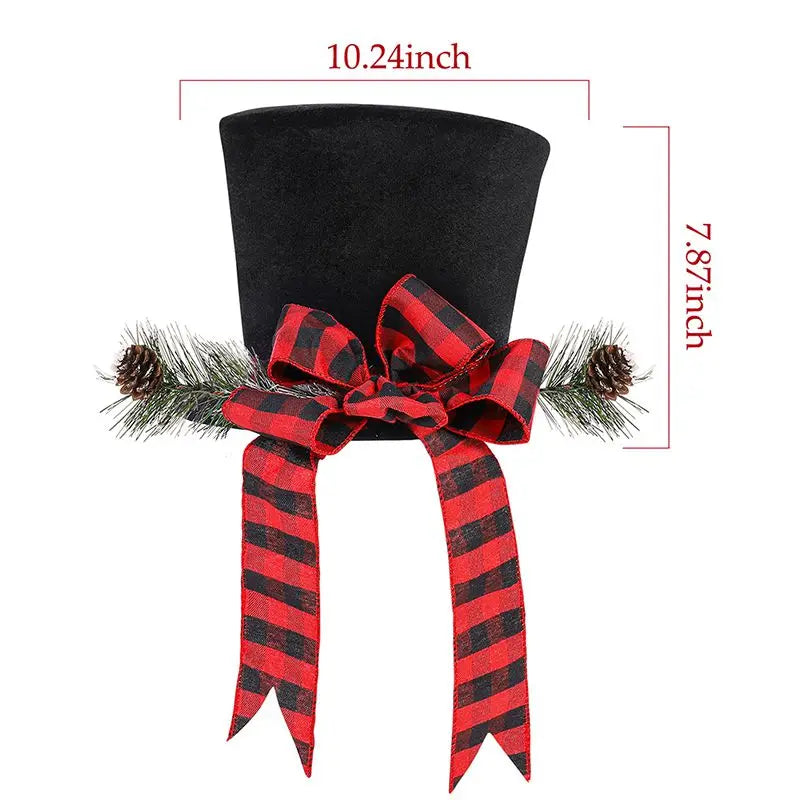 2. Red and black top hats with lattices, bows and ribbons. The unique hats can be used as tree top decorations or as holiday decorations.