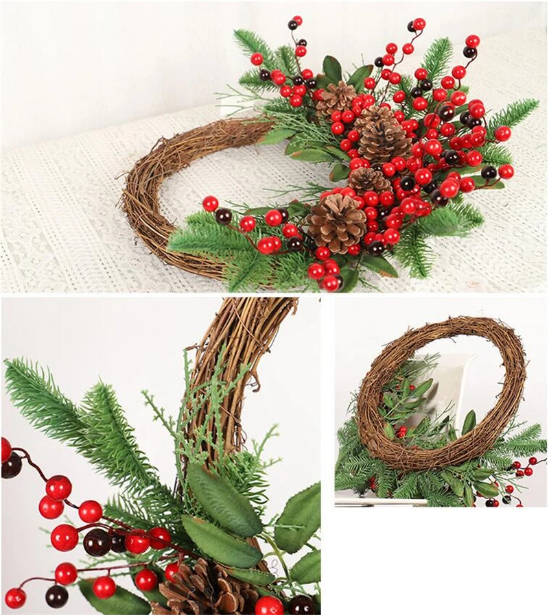 Christmas Rattan Wreath Pine Natural Branches Berries Pine Cones Christmas Wreath Supplies Home Door Decoration For New Year's