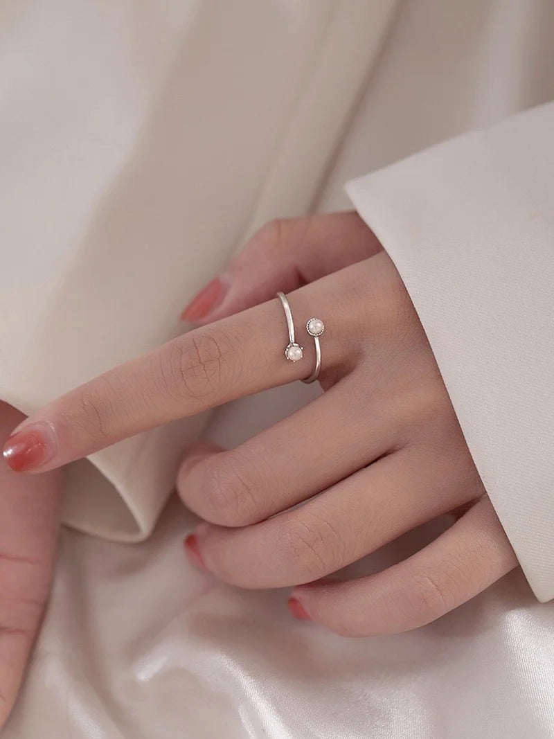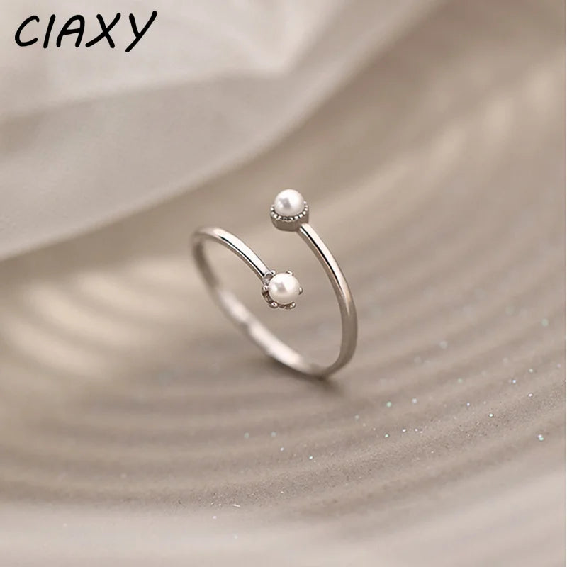 CIAXY Silver Color Pearl Rings for Women Open Adjustable Ring French Luxury Retro Jewelry Party Gift