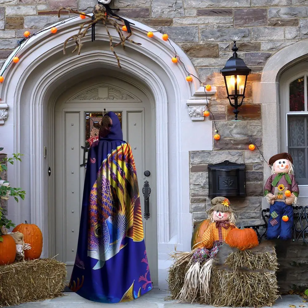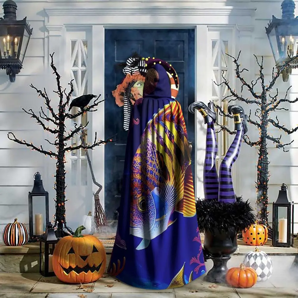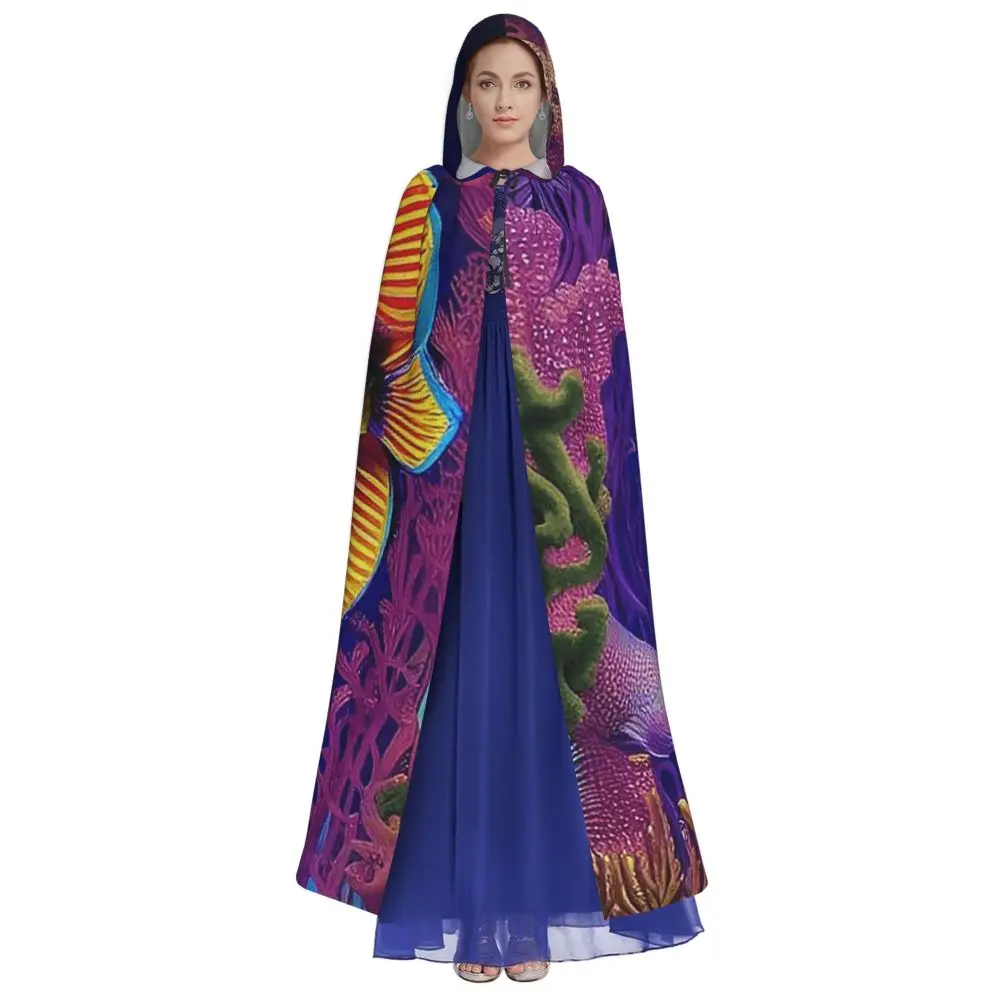 Colorful Fish In The Ocean Tropical Fish Long Hooded Cloak Witch Medieval Costume Cosplay Cape HalloweenCoat Adult Unisex