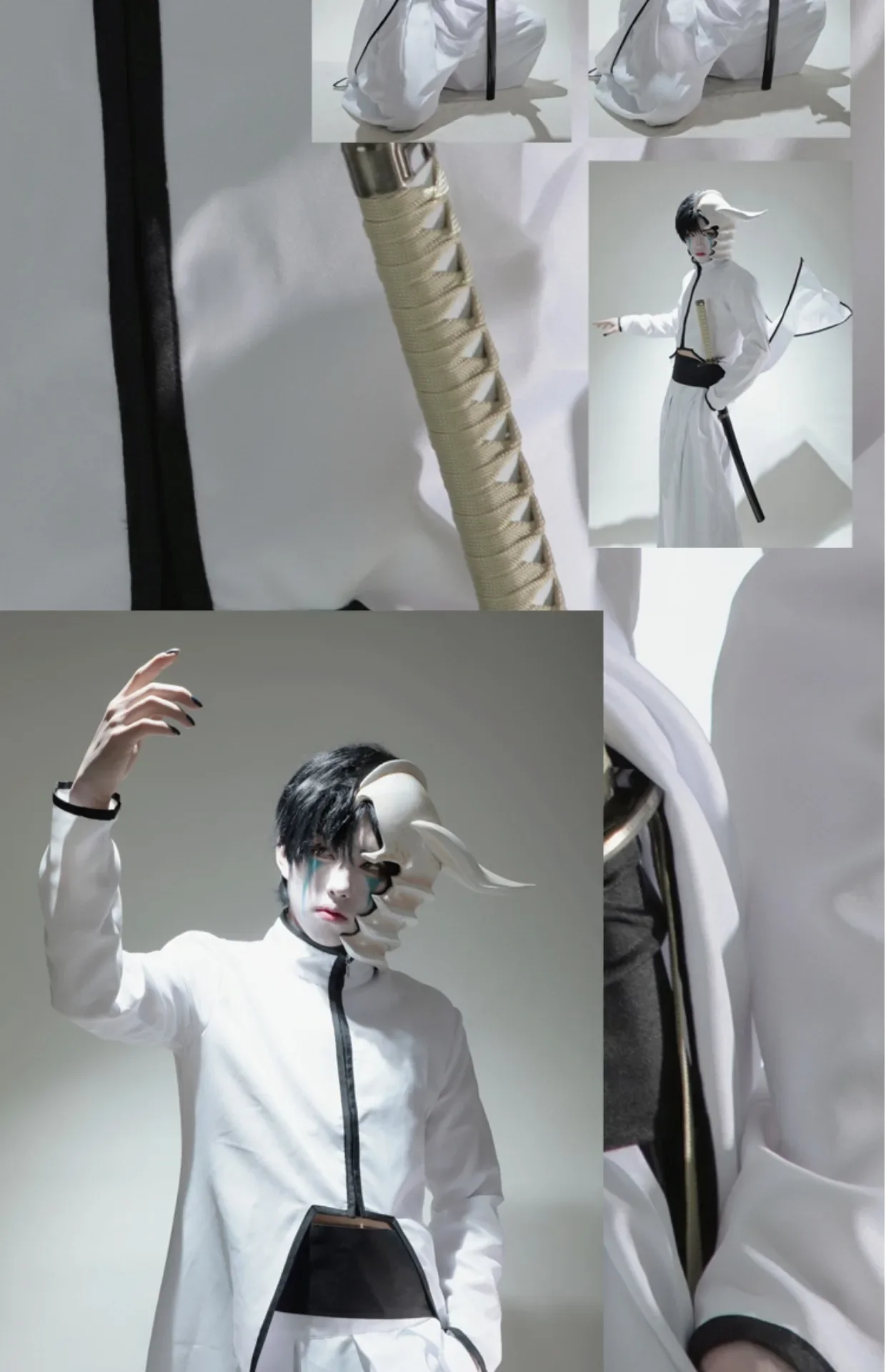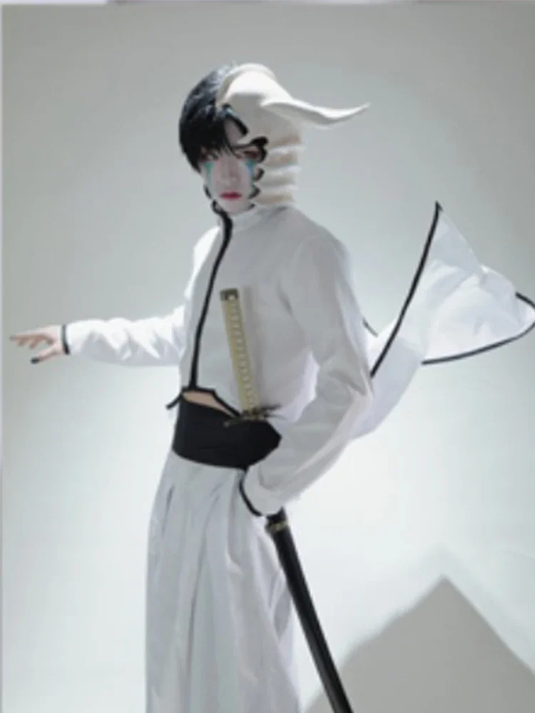 CosplayAnime Bleach Ulquiorra's Cosplay Costume Ulquiorra Helmet Masks Wigs Hairs White Kimono ( Jacket + Pants + Belt ) Kendo C