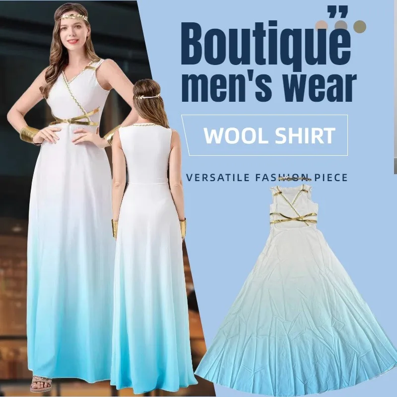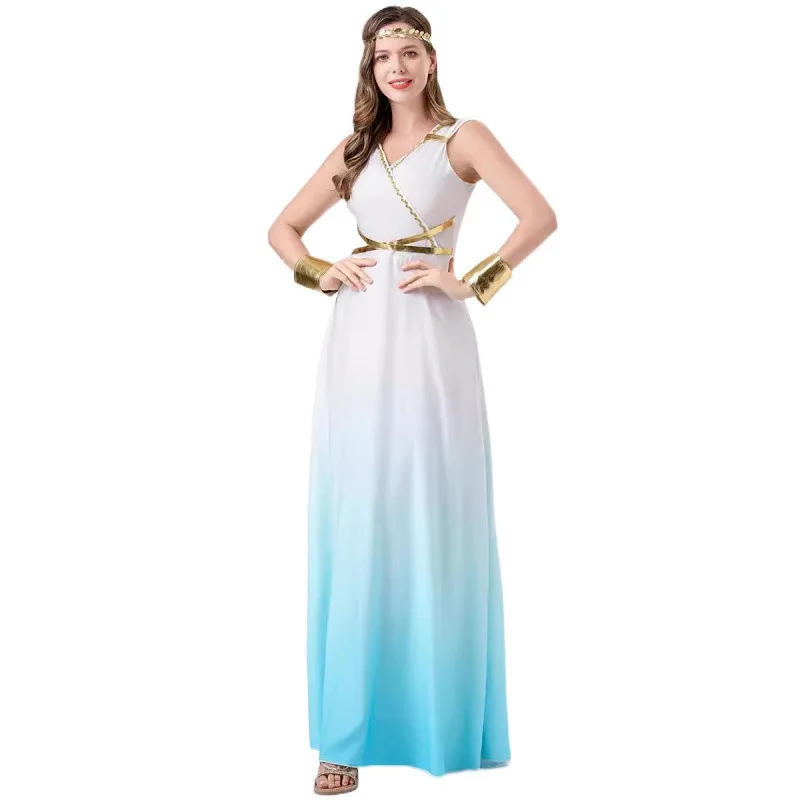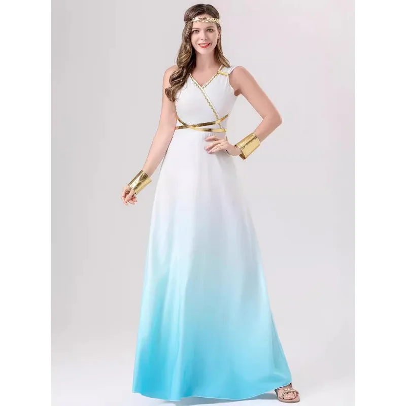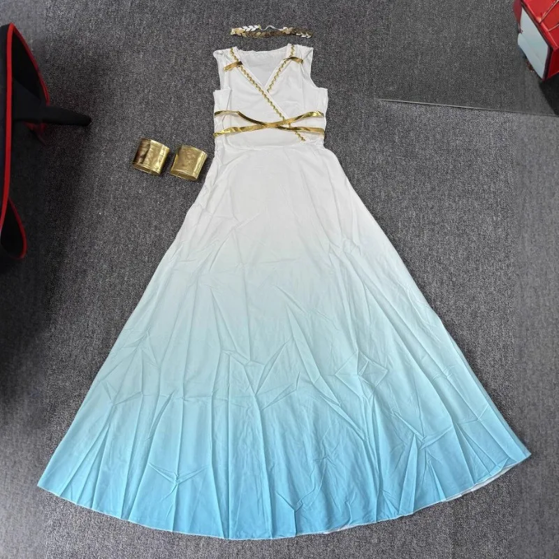 Costumes accessories Halloween costume blue and white gradient dress Greek goddess dress cosplay dance party performance costume