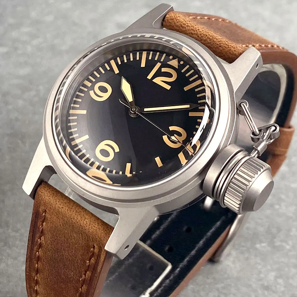 Customized 36MM Automatic NH35/PT5000 Movement Military Field Army Watch Vintage For Men 20ATM Big Crown Double Dome Sapphire