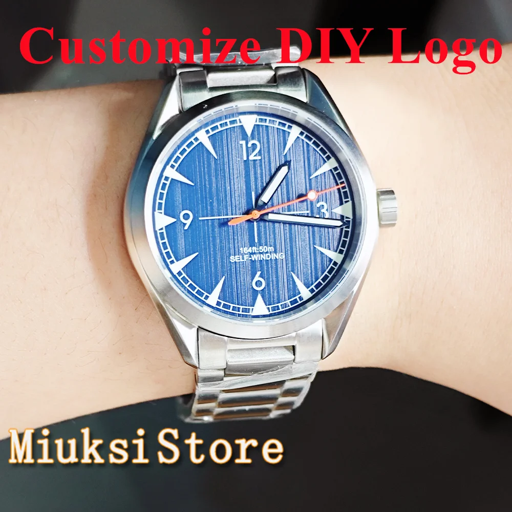 Customized DIY LOGO Watch 41mm Silver Stainless Steel Sapphire Crystal Watch Case NH35 Miyota 8215 Automatic Movement Watch