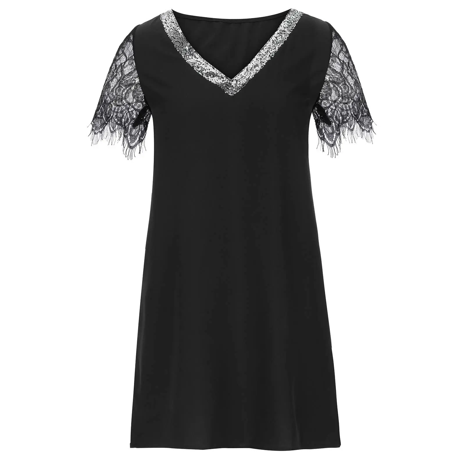 Deep V Neck Autumn Silver Sequined Lace Sexy Dress Women Off Shoulder Mini Christmas Party Club Vestidos