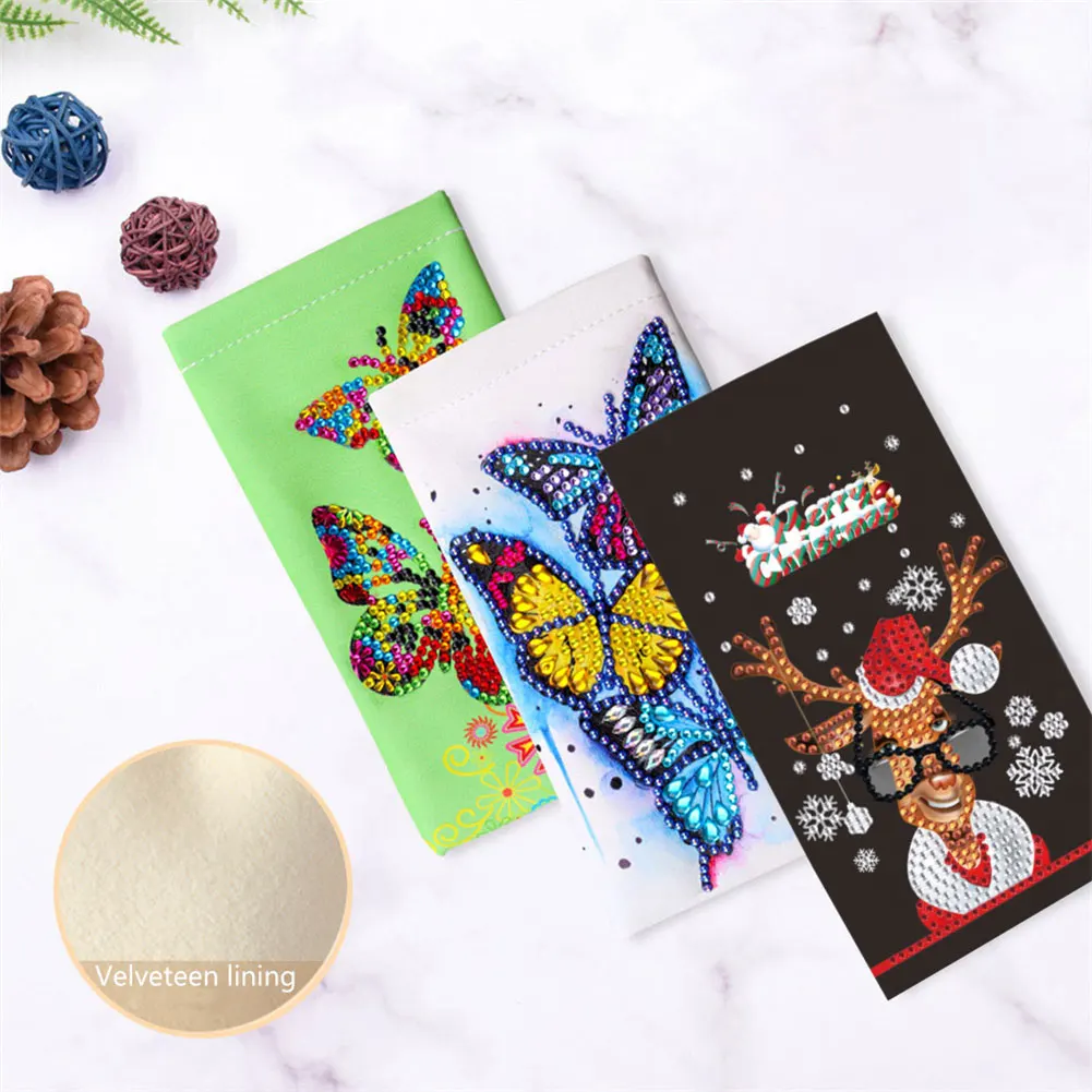 DIY Diamond Painting Glasses Storage Bags Waterproof Glasses Pouches Cartoon Diamond Painting Craft Handbag Kit Christmas Decor