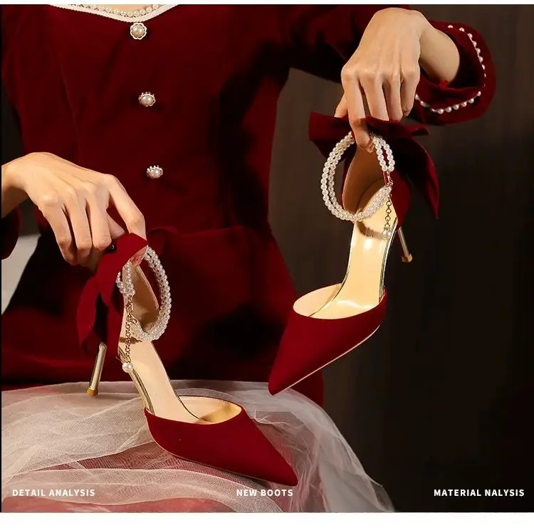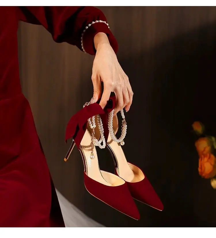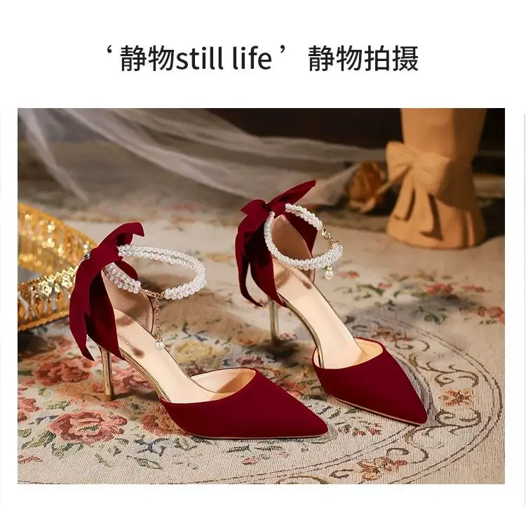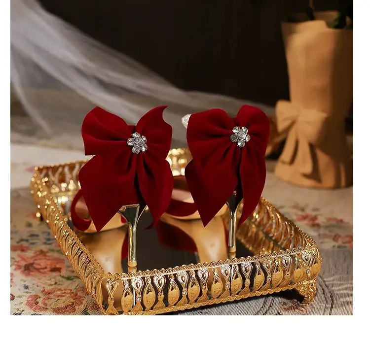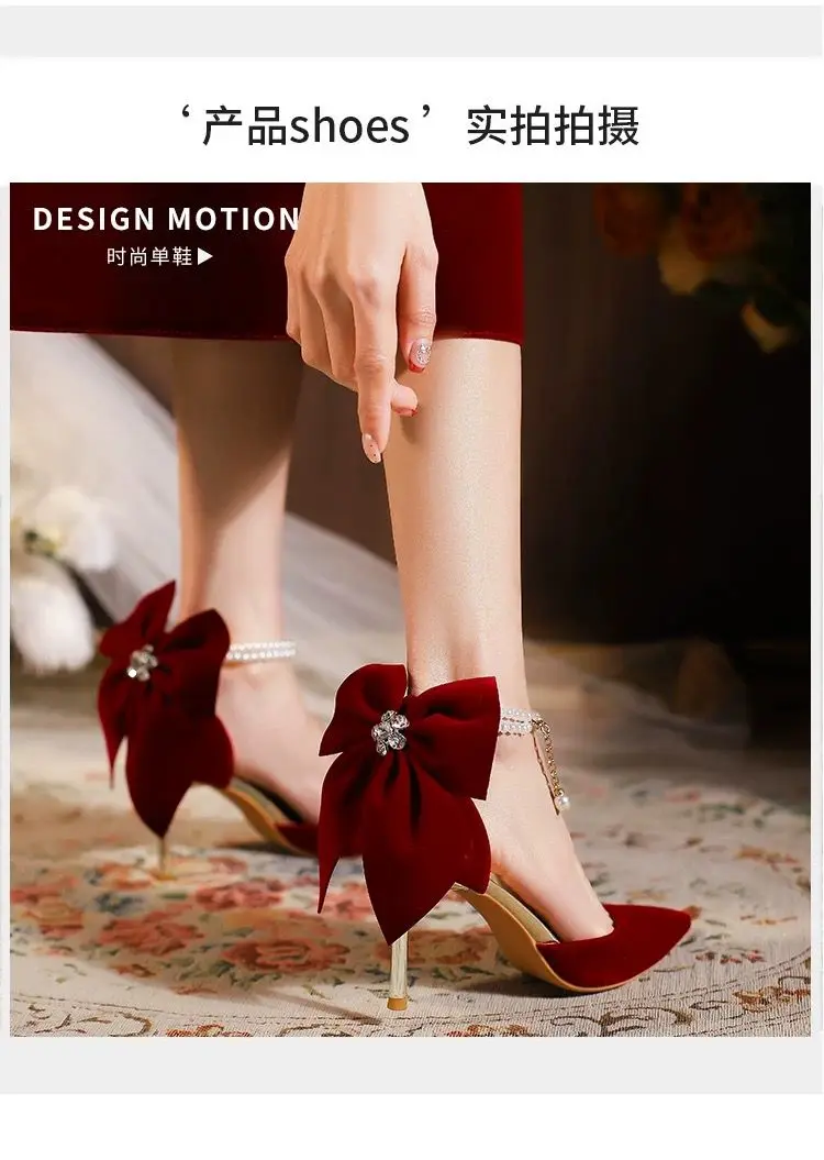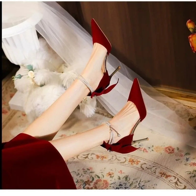 Elegant Women Heel Shoes High Heels Pumps Sexy Stilettos Wedding Shoes Bride Heels Red White Bowknot Footwear