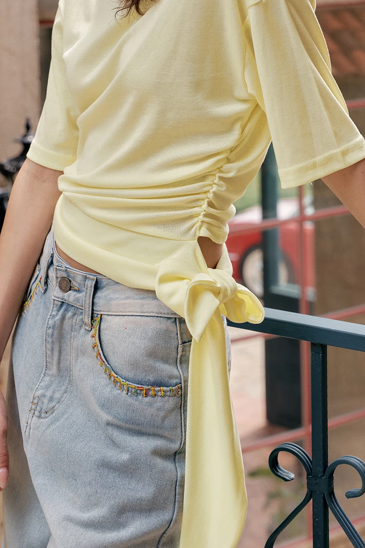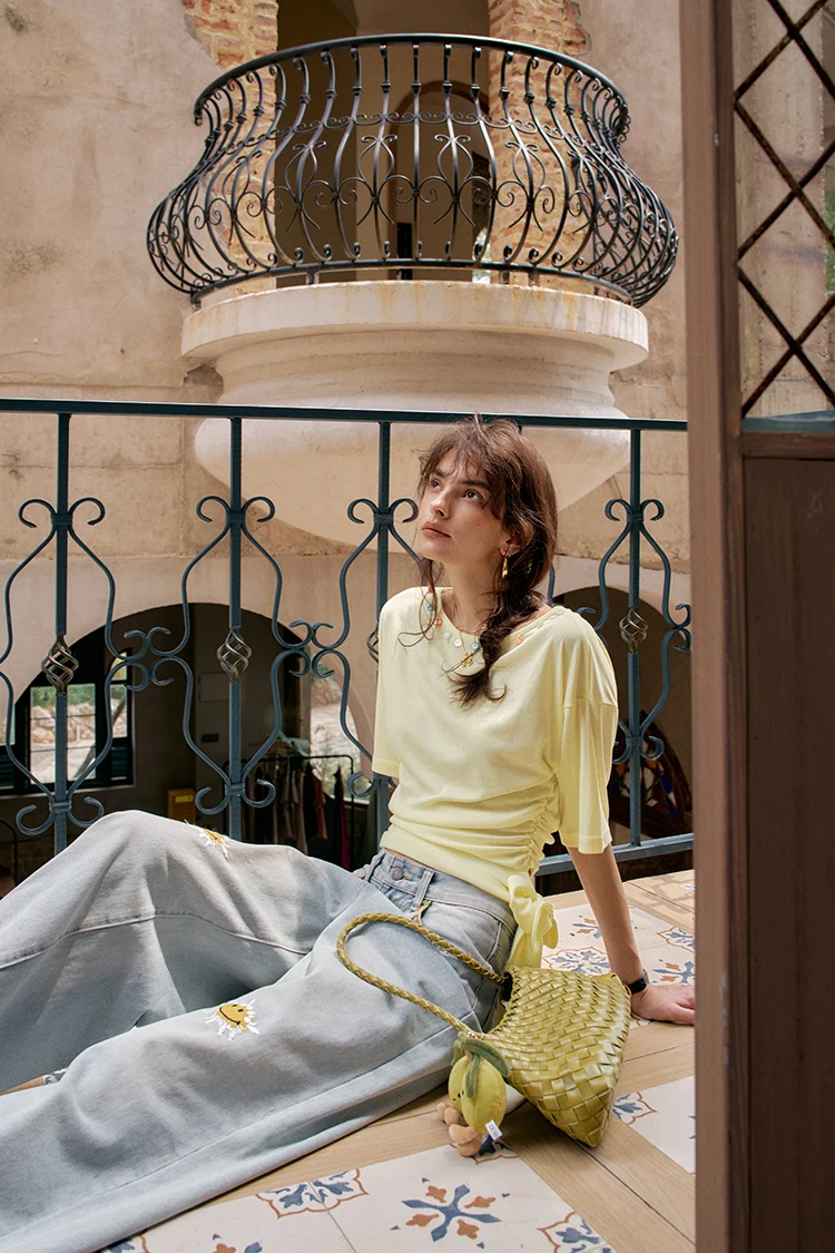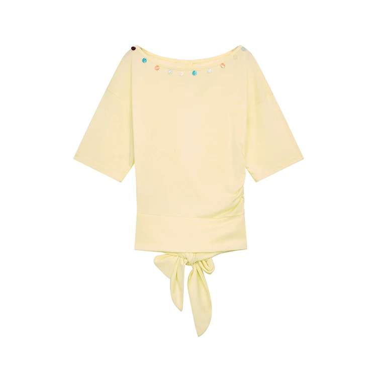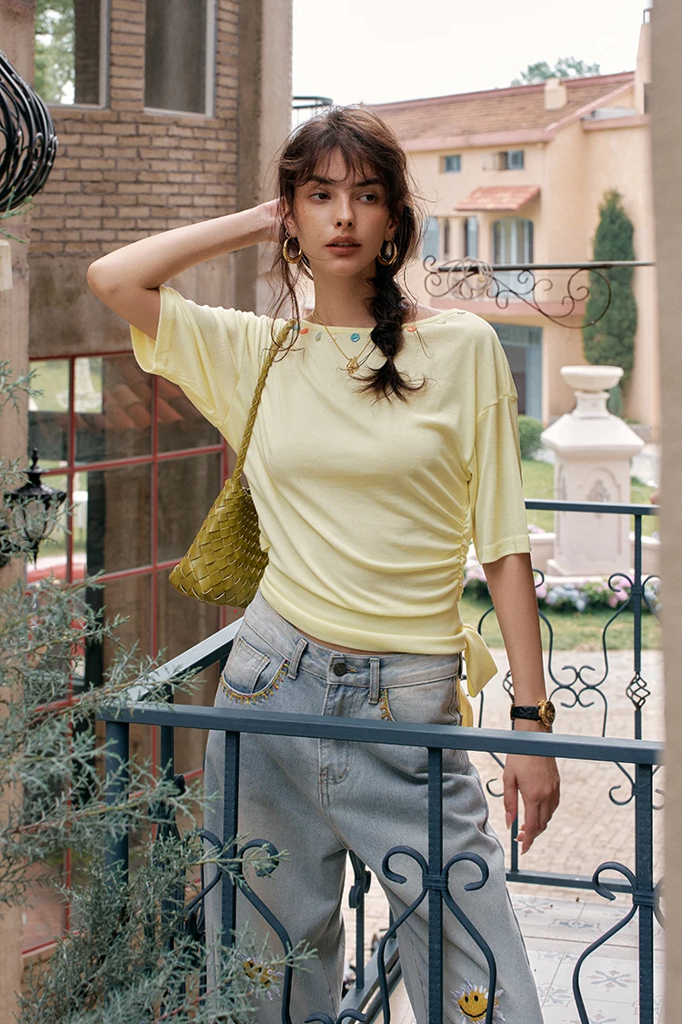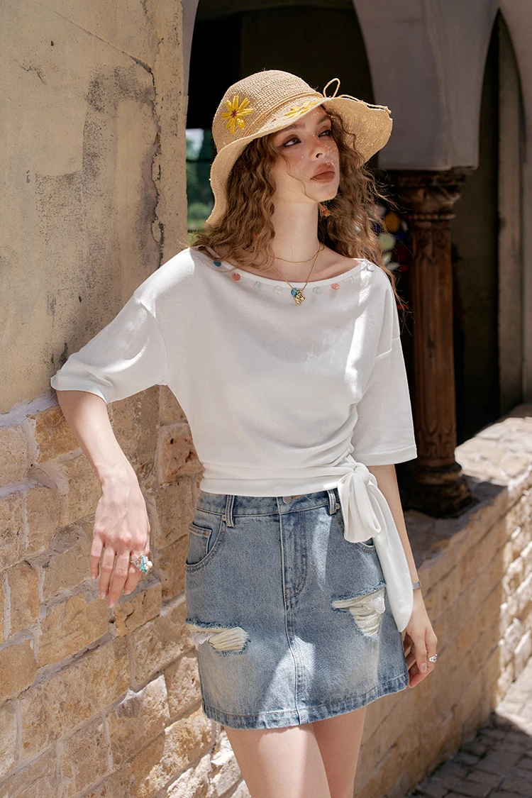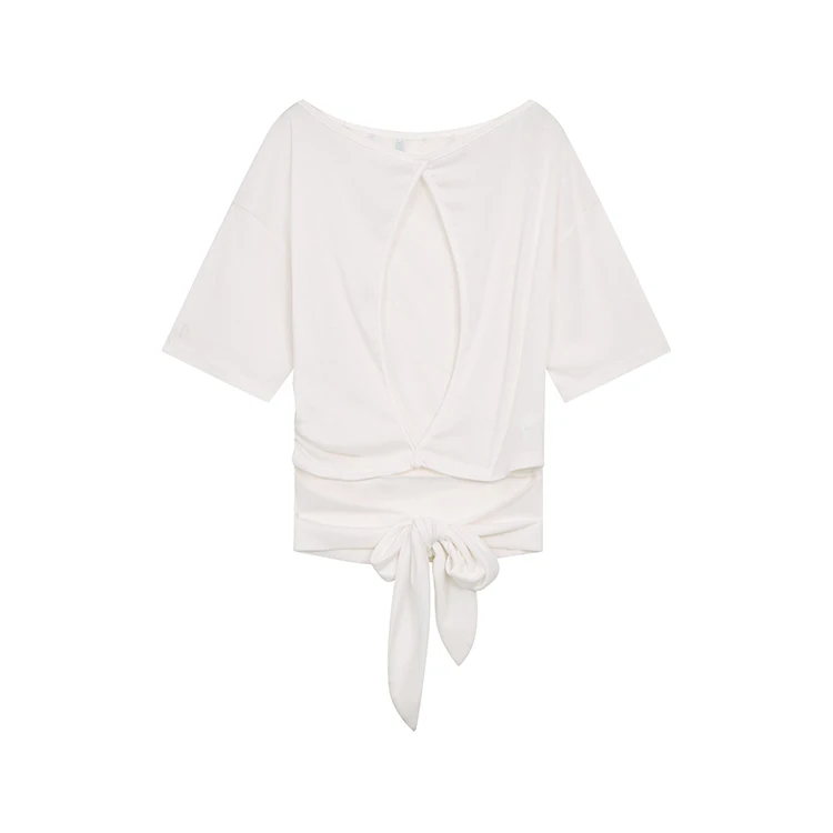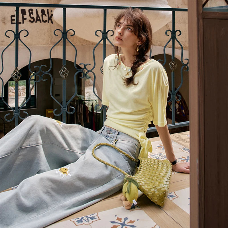 ELFSACK 2025 Summer New Arrivals Back Hollow Lace Up White Short Sleeve Chic T-Shirt For Women