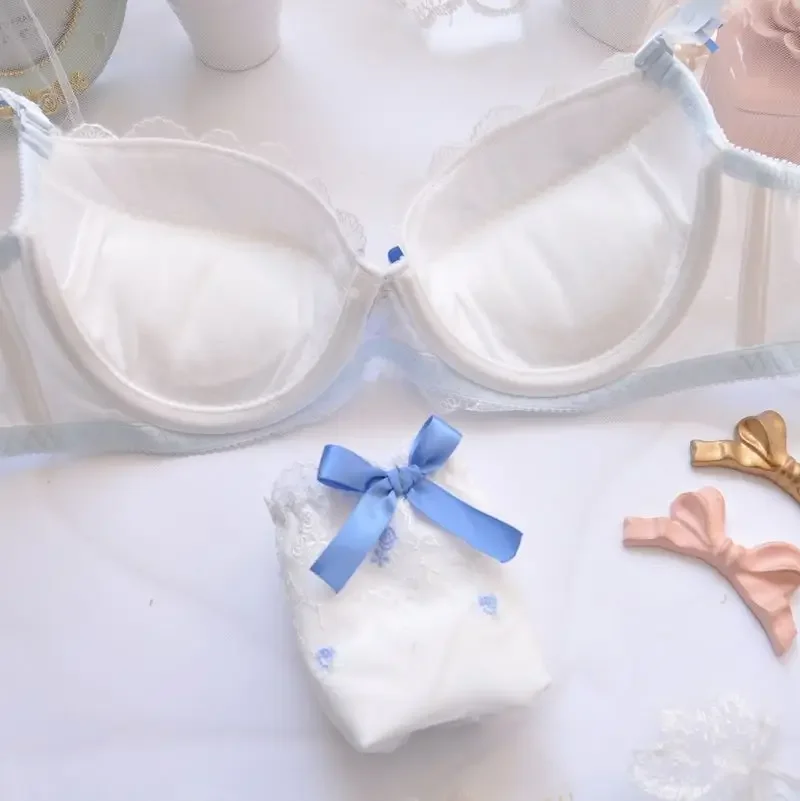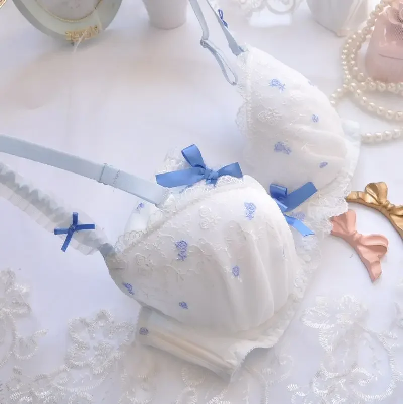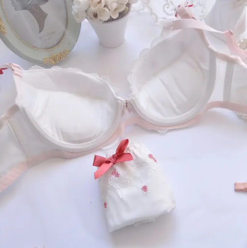 Embroider Thin Cup Girl Cute Sexy Lingerie Bra Set Plus Size Women