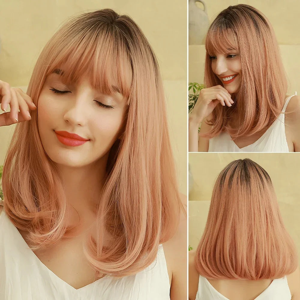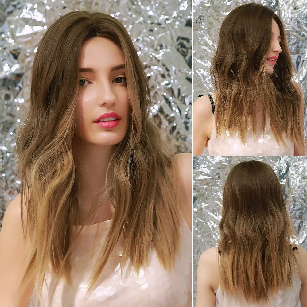 ESIN Synthetic Dark Brown Wig Long Wave Wigs for Women Hair Wig With Bangs Heat Resistant Party Daily Natural Use