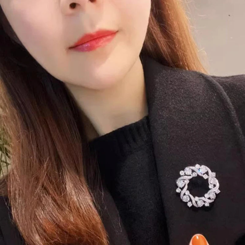 Fashion Silver Rhinestone Round Wreath Brooches For Women Clothing Coat Jewelry Accessries Gift