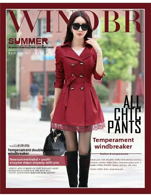 Fashionable Polo Collar Trench Coat for Women 30 40 50 Years Old Mothers Spring Autumn Mid Length Youthful Jacket