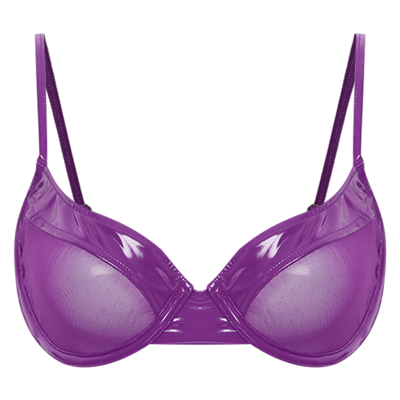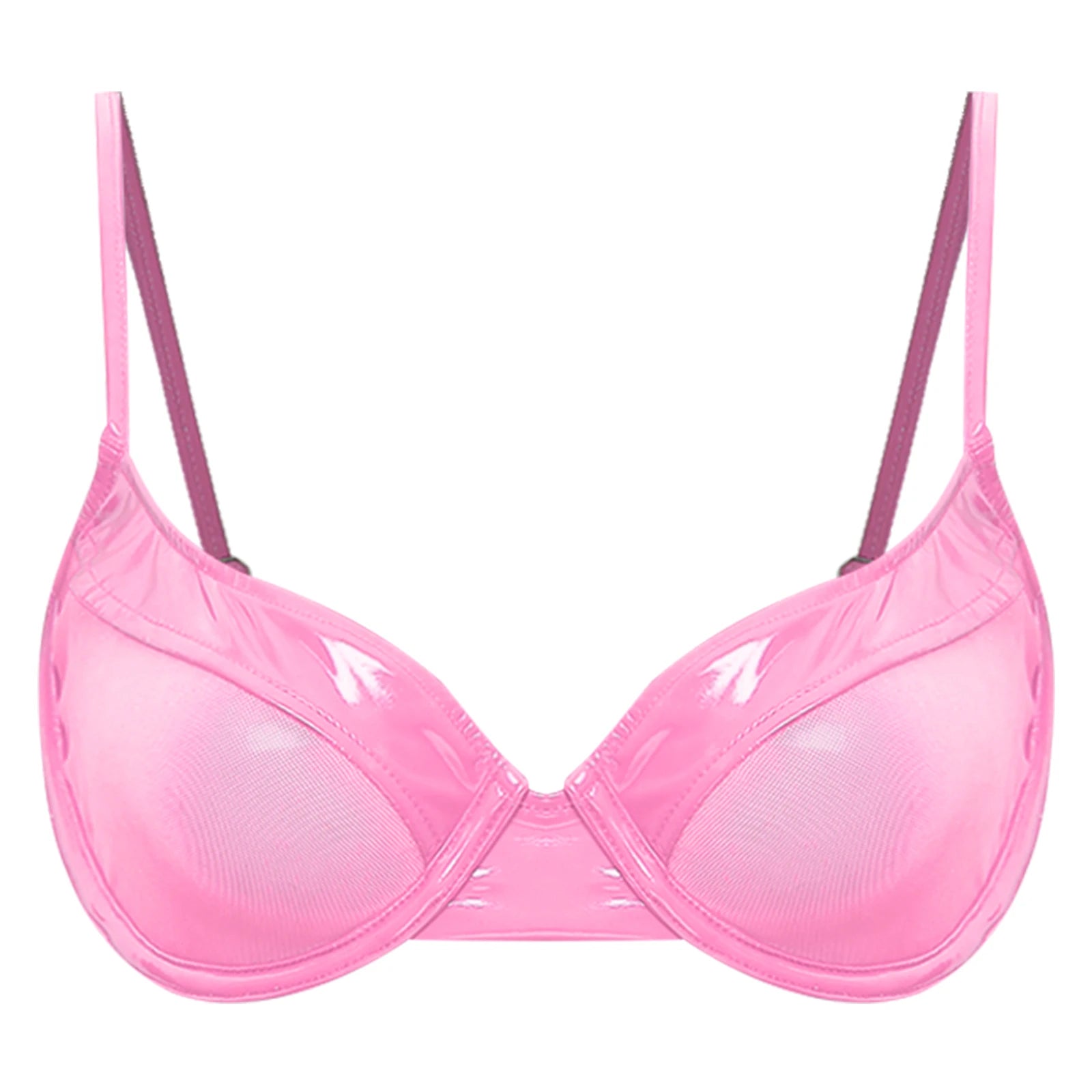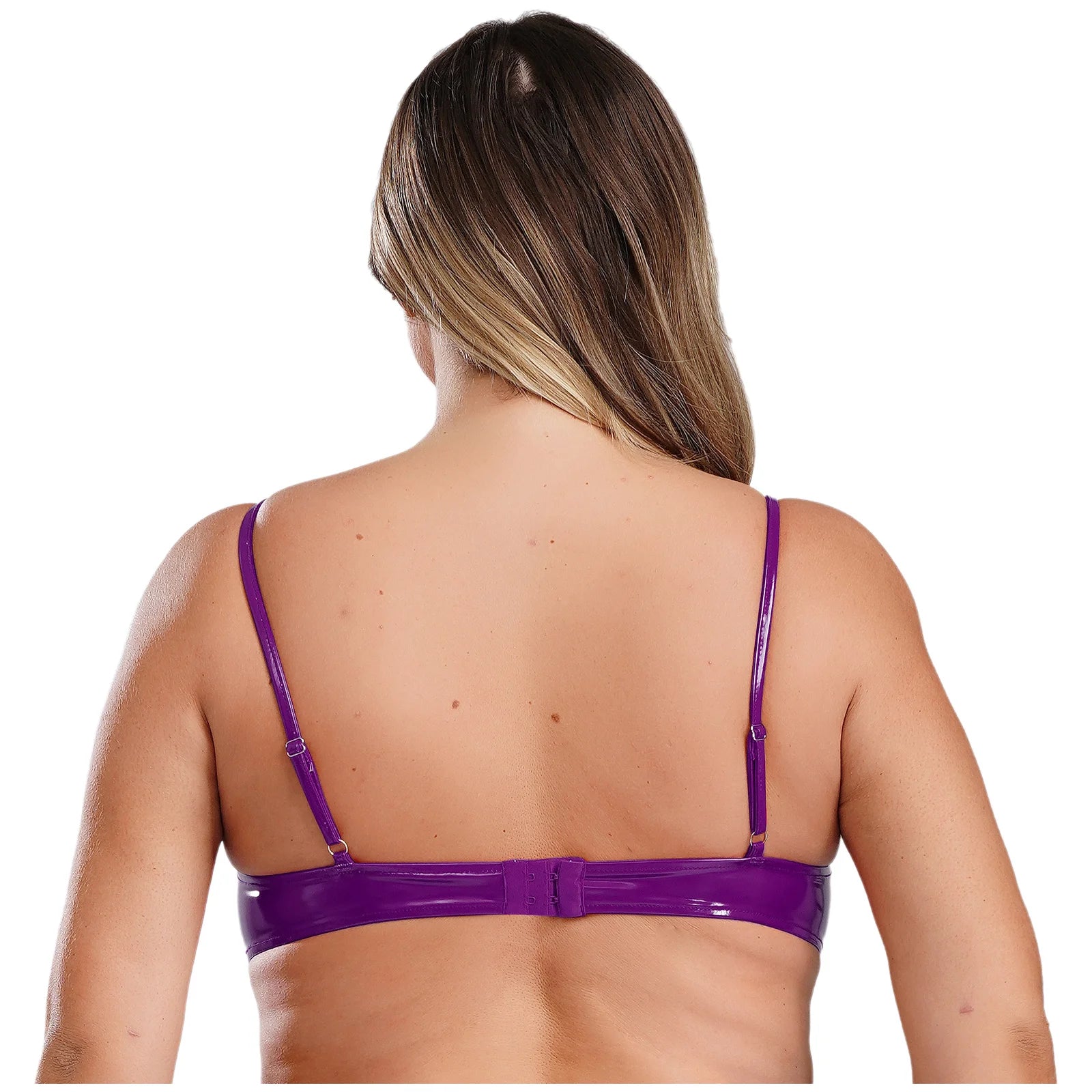 Female 3/4 Cup Push Up Brassiere with Wire Adult Women Swimwear Tops Plus Size Patent Leather Lingerie Bra Bralette Underwear