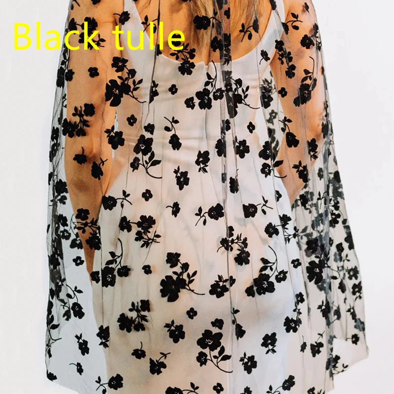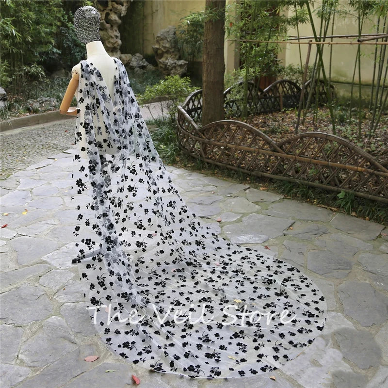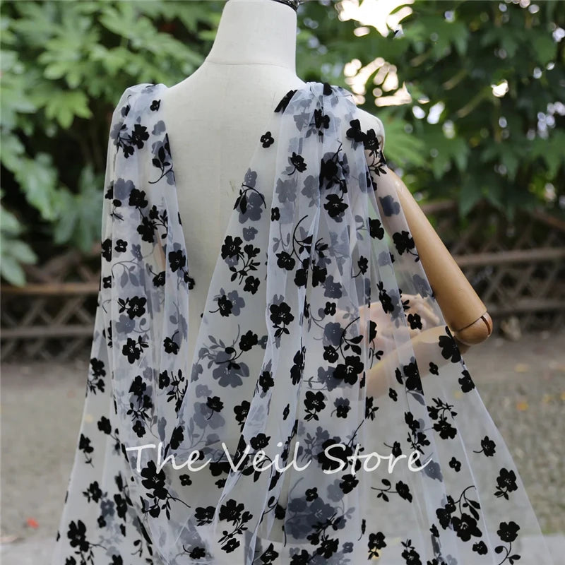 Flocking Tulle White And Black Bridal Cape Draped Shoulder Veils Wedding Shrugs For Brides Floral Cathedral Long With Clips New