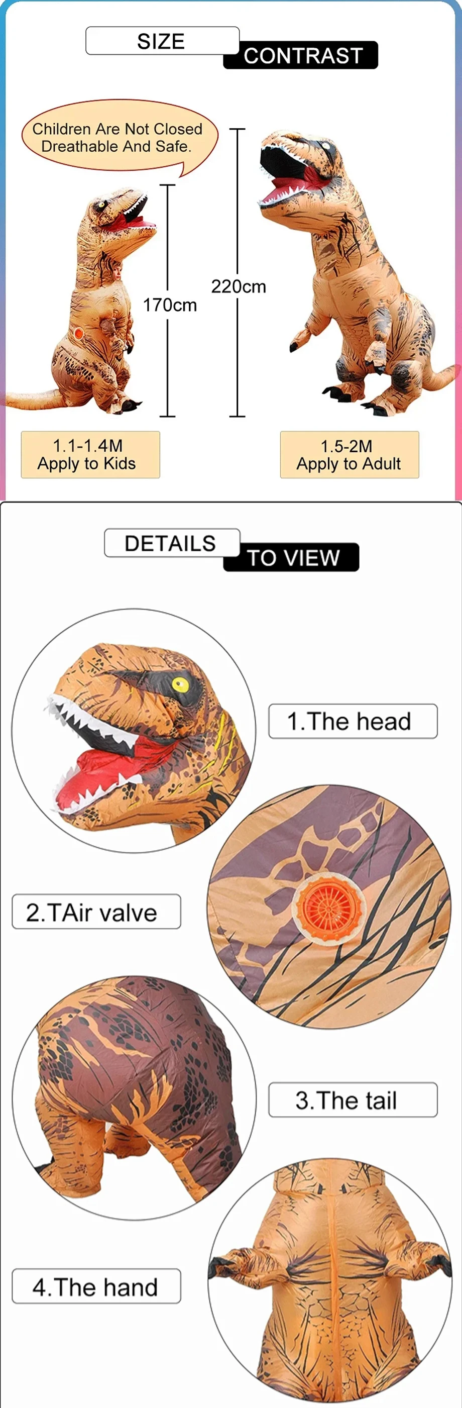 Funny Inflatable Dinosaur Carnival Costume Halloween Christmas New Year Birthday Party Role Playing T-Rex Inflatable Suit Gift