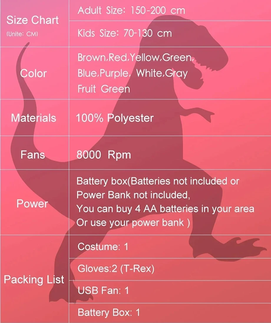 4. **Realistic Design**: Features a detailed and lifelike dinosaur appearance, transforming you into the king of the Jurassic period instantly.